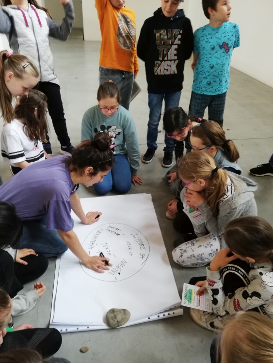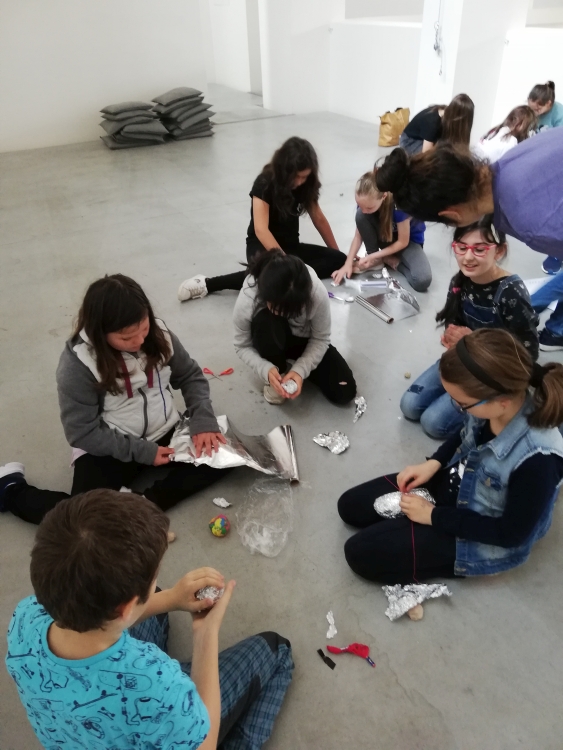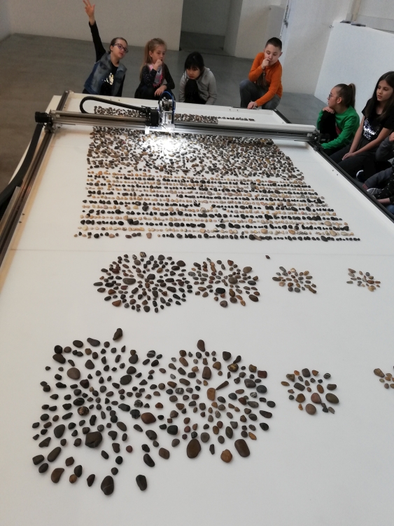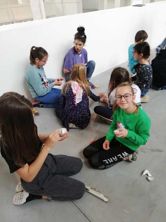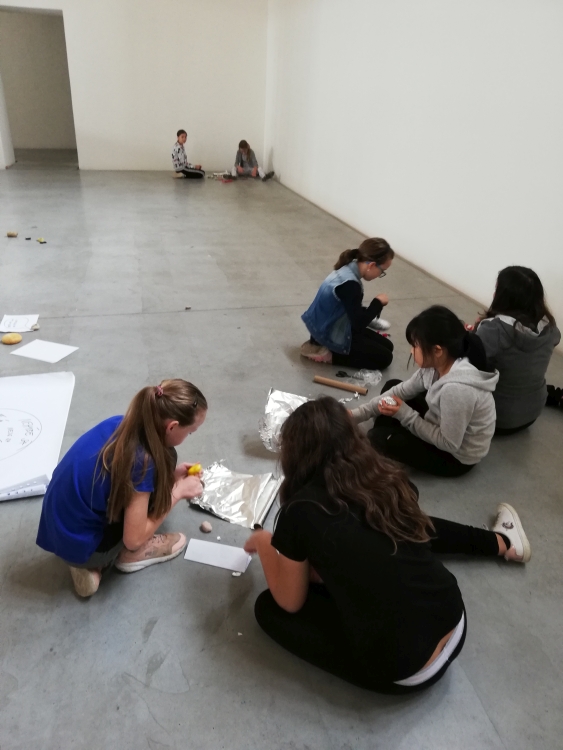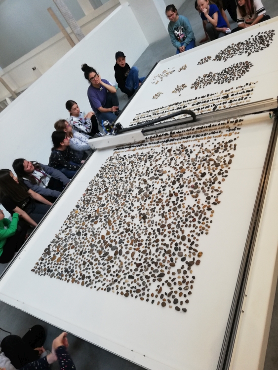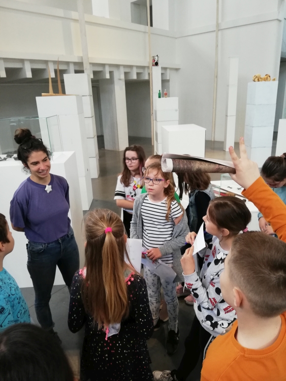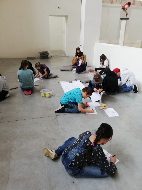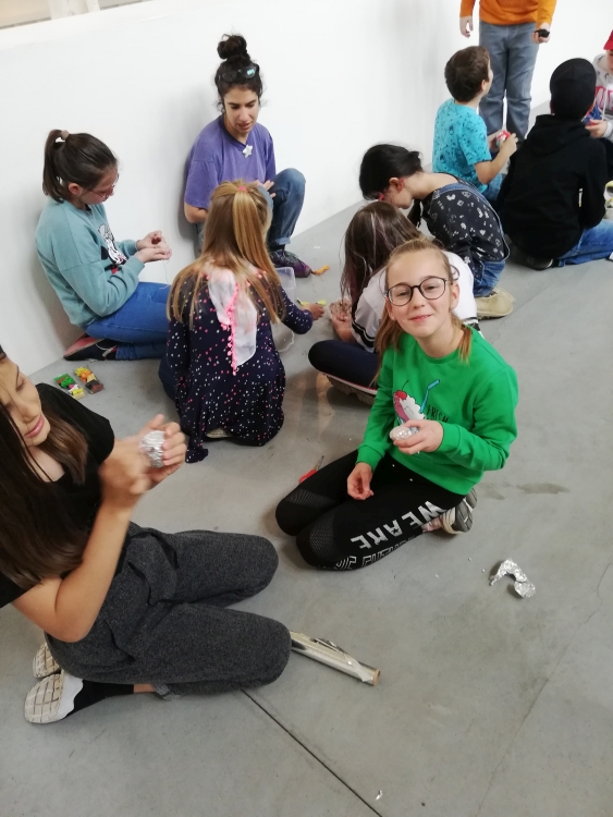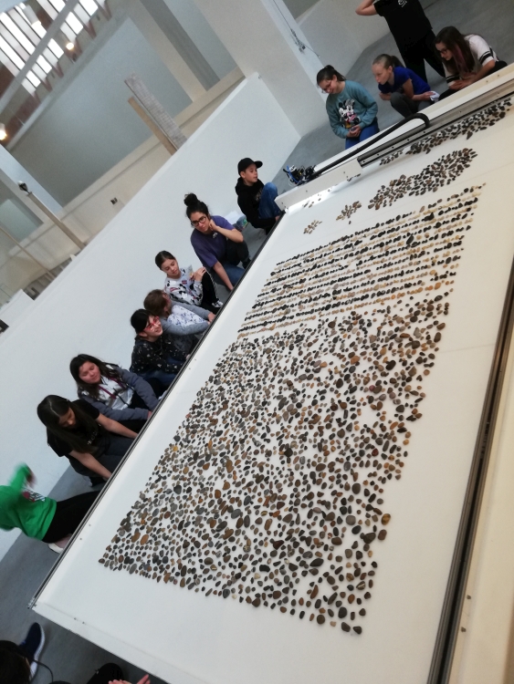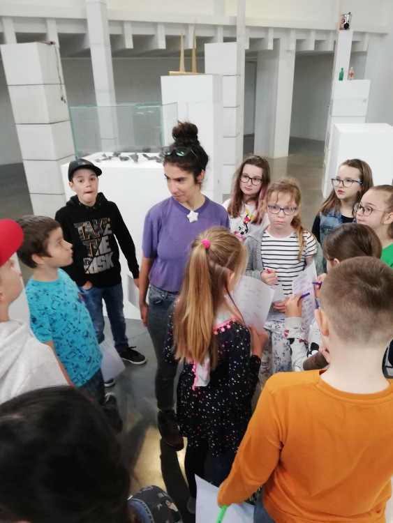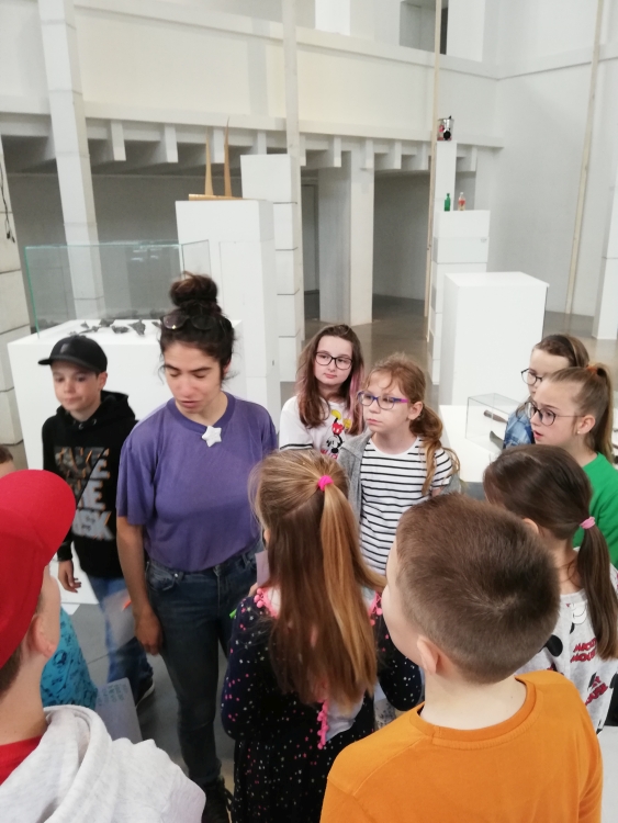 Včielky dnes navštívili Novú synagógu ,aby spoznali ,uvideli a pochopili “Vedúcu skamenelinu”. To je názov výstavy,ktorou nás viedla Simonka a zároveň dokázala všetkých “namotať ” aj k vlastnej tvorbe.