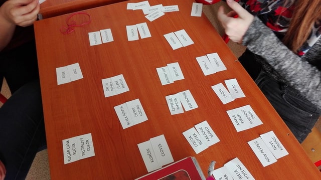 <p>Začiatkom apríla sa naši siedmaci vydali do exotických krajín a tak ako objavitelia a cestovatelia v minulosti, aj oni poznávali nové koreniny. Zapojili sme prístup CLIL a hľadali anglicko-slovenské dvojice rôznych druhov voňavých surovín. Zábavnou a zaujímavou formou žiaci videli, čo vlastne doma v kuchyni majú. Rozprávali sme sa, ako koreniny využívame, odkiaľ pochádzajú, ako chutia a voňajú. Najväčší úspech si užilo kakao, trstinový cukor a javorový sirup. Pochopiteľne.</p>