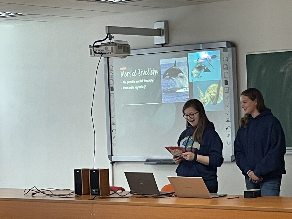 V rámci predmetu biológia sa naši šiestaci a siedmaci mali možnosť aktívne zúčastniť zaujímavej besedy o Oceánoch. Tú si pre nás pripravili žiačky Gymnázia Hlinská v Žiline – Katarína Plachá a Nina Šparcová, zapojené do programu The Duke of Edinburgh´s Award (DofE). V rámci tohto programu sa žiačky venujú intenzívne ochrane prírody a prostredia okolo nás. Neváhali sme a s radosťou sme uvítali takúto spoluprácu, ktorú zastrešuje okrem Ministerstva školstva, vedy, výskumu a športu Slovenskej republiky, IUVENTY, slovenského inštitútu mládeže aj Informačné centrum mladých OZ Sytev. Diskutovali sme spoločne so žiakmi o znečistení oceánov a vôd, s dôrazom na ohrozené živočíchy, ktoré sú na pokraji vyhynutia. Kriticky sme posúdili aktuálnu situáciu oceánov a morí a hľadali spoločné riešenia, ako pomôcť a nielen napraviť vzniknuté škody ale najmä im predchádzať do budúcna, a tiež robiť osvetu ďalším, ktorí si možno ani neuvedomujú, ako nepriamo prispievajú k vymieraniu života v oceánoch. Žiaci tiež veľmi ocenili zábavný kvíz, v ktorom si preverili svoje nadobudnuté vedomosti o rôznych morských živočíchoch.