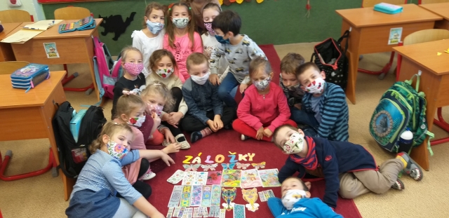 V ďalších dňoch sme pracovali ako včeličky na vytvorení krásnych záložiek, ktoré naša škola bude posielať deťom do školy vo Veľkom Mederi, v rámci projektu : Záložka do knihy spája školy.