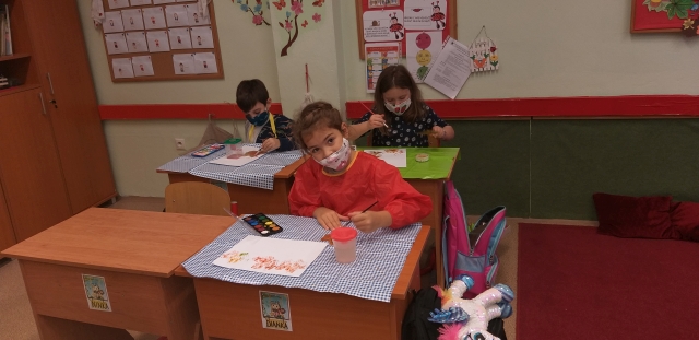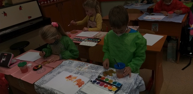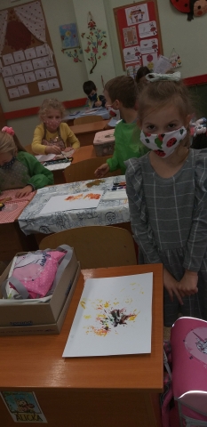 A pokračovali sme v tvorivej dielni z listov na výzdobu našej triedy a oddelenia.