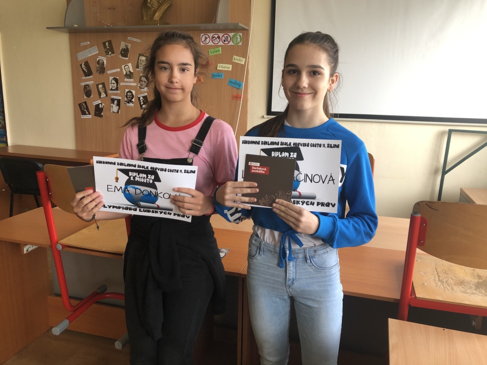 Aj tento rok sme na našej škole dali priestor Olympiáde ľudských práv. Naši žiaci v jednotlivých kategóriách preukázali veľmi dobré vedomosti v náročných úlohách teoretického i praktického charakteru. V kategórii siedmeho ročníka sa najlepšie výsledky podarilo získať: 1. miesto Nina Isteníková, 2. miesto Artur Antol, 3.miesto Magdaléna Salajová. V kategórii ôsmeho a deviateho ročníka sa umiestnili: 1.miesto Lucia Ptačinová, 2.miesto Ema Donková, 3. miesto Martin Bodorík. Víťazom blahoželáme.