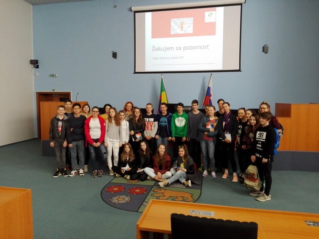 <p>Deň 6.4.2016 n&aacute;s pote&scaron;il nie len kr&aacute;snym slnečn&yacute;m počas&iacute;m, ale aj zauj&iacute;mav&yacute;m programom. Dopoludnie mali žiaci &ocirc;smeho ročn&iacute;ka vyplnen&eacute; naozaj pestr&yacute;mi z&aacute;žitkami. Nav&scaron;t&iacute;vili divadeln&eacute; predstavenie v Dome odborov v Žiline Bratia Grimmovci. Herci Andrej &Scaron;olt&eacute;s a Martin Meľo v &uacute;lohe zn&aacute;mych rozpr&aacute;vkarov a jazykovedcov predviedli žiakom uk&aacute;žky z rozpr&aacute;vok, ktor&eacute; im ako mal&yacute;m deťom č&iacute;tali mamy na dobr&uacute; noc. Dej bol mozaikou viacer&yacute;ch pr&iacute;behov, a tak mali žiaci možnosť ponoriť sa do z&aacute;zračn&eacute;ho sveta a putovať z rozpr&aacute;vky do rozpr&aacute;vky.<br />Po kr&aacute;tkej prech&aacute;dzke po Žiline sa presunuli na p&ocirc;du &uacute;radu Žilinsk&eacute;ho samospr&aacute;vneho kraja. Pri vchode ich čakala riaditeľka odboru &scaron;kolstva ŽSK Dana Mažg&uacute;tov&aacute;, ktor&aacute; žiakov previedla budovou a potom ich usadila do zasadacej miestnosti, kde mali žiaci možnosť vysk&uacute;&scaron;ať si aj rokovacie lavice krajsk&yacute;ch poslancov. Dozvedeli sa množstvo faktov a zauj&iacute;mavost&iacute; t&yacute;kaj&uacute;cich sa regi&oacute;nu, v ktorom b&yacute;vaj&uacute;. V kr&aacute;tkosti sa obozn&aacute;mili s fungovan&iacute;m tejto in&scaron;tit&uacute;cie a zapojili sa do debaty o d&ocirc;ležitosti spr&aacute;vneho v&yacute;beru strednej &scaron;koly. D&uacute;fame, že si slov&aacute; pani riaditeľky &ocirc;smaci vezm&uacute; k srdcu. Okrem toho si žiaci pozreli aj v&yacute;stavu, ktor&aacute; sa nach&aacute;dzala vo foyer budovy. Bola to v&yacute;stava pr&aacute;c žiakov z reedukačn&eacute;ho centra v Lietavskej L&uacute;čke. N&aacute;v&scaron;teva ŽSK sa žiakom veľmi p&aacute;čila a spoločne touto cestou ďakujeme pani riaditeľke Mažg&uacute;tovej a jej dvom mil&yacute;m asistentk&aacute;m za ich čas, &uacute;smev, exkurziu a inform&aacute;cie a d&uacute;fame, že sa op&auml;ť uvid&iacute;me.&nbsp;<br />Čl&aacute;nok o exkurzii na&scaron;ich žiakov na &uacute;rade ŽSK si m&ocirc;žete preč&iacute;tať aj tu:&nbsp;<a href="http://www.zask.sk/sk/aktuality/aktuality/zilinsky-kraj-spoznavali-urade-zsk-osmaci-zo-ziliny.html" target="_blank">http://www.zask.sk/sk/<wbr />aktuality/aktuality/zilinsky-<wbr />kraj-spoznavali-urade-zsk-<wbr />osmaci-zo-ziliny.html</a></p>