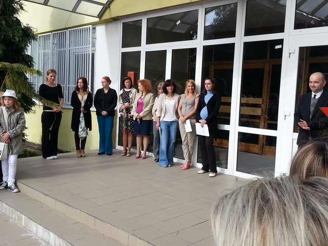 V prvý deň školského roka 2013/2014 sme sa všetci zišli pred vchodom do školy, kde nás srdečne privítala pani riaditeľka Mgr. Zuzana Oleárová. Pozdravila i našich najmenších – prváčikov. Plní zážitkov z dovoleniek, táborov a výletov sme vchádzali do tried, aby sme sa pokochali, čo je nového a ako sa všetko zmenilo. Veríme, že i tento školský rok bude tak úspešný ako ten prechádzajúci.