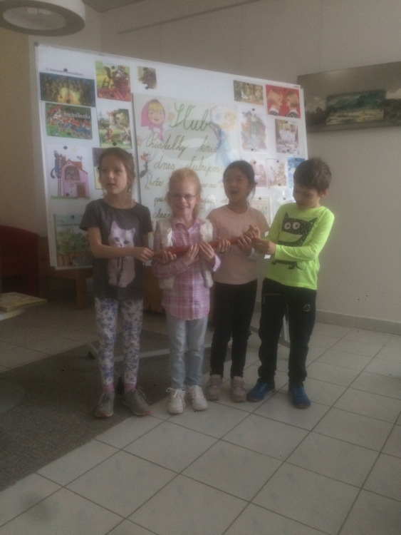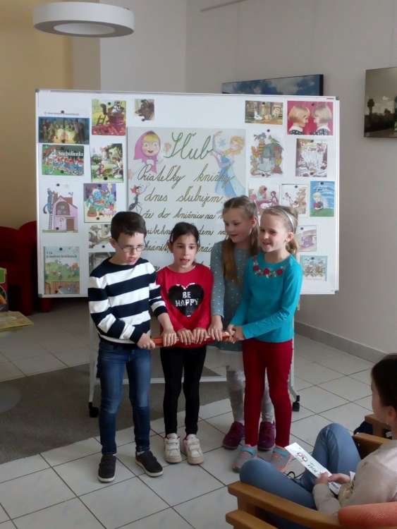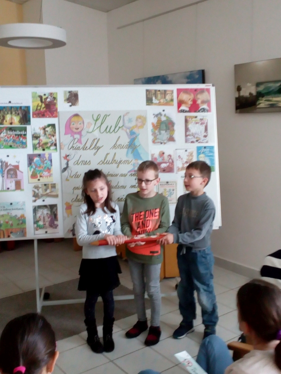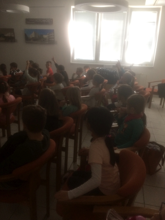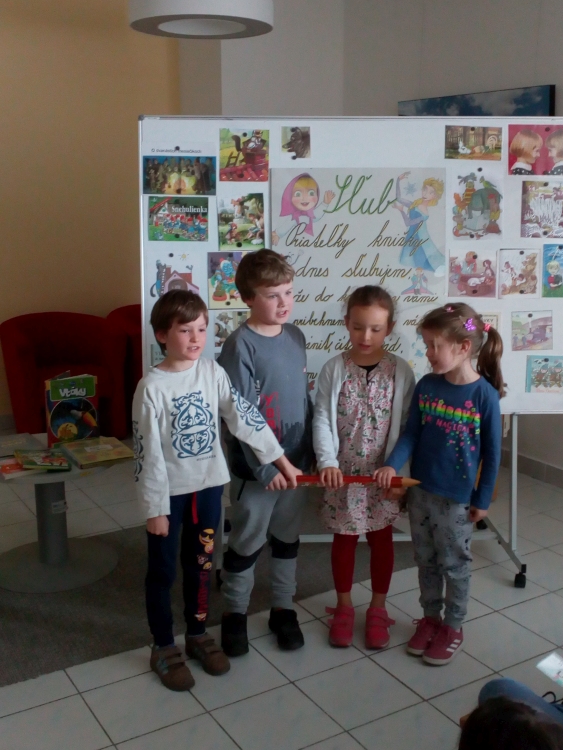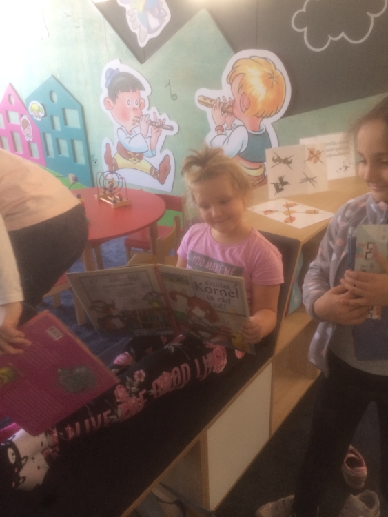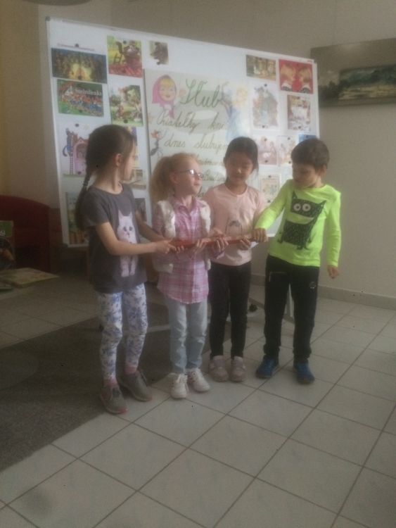 V utorok 16.4. naši veselí prváci boli spoznávať Krajskú knižnicu v Žiline. Bola to ich prvá spoločná návšteva v knižnici, kde im tety vysvetlili, ako sa majú v knižnici správať, ako sa požičiavajú knihy, ako si ich môžu vyberať a samozrejme zložili spoločne sľub a každý sľúbil, že “bude dobrým čitateľom”. Dostali aj pekné záložky a po splnení úloh aj čitateľské preukazy. Dokonca sme si vypočuli aj pekný príbeh “Calvin nevie lietať” o škorcovi, ktorý sa nenaučil lietať, lebo stále čítal, no nakoniec vďaka svojim vedomostiam z kníh zachránil svoju rodinku. Už teraz sa tešíme na spoločnú návštevu v knižnici opäť v máji.