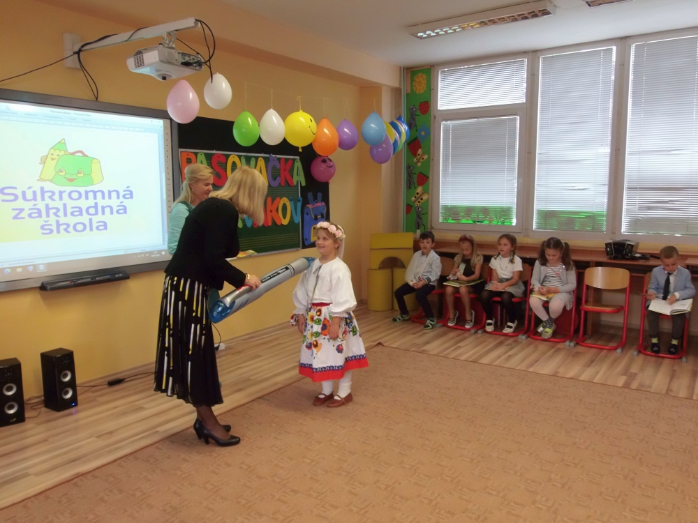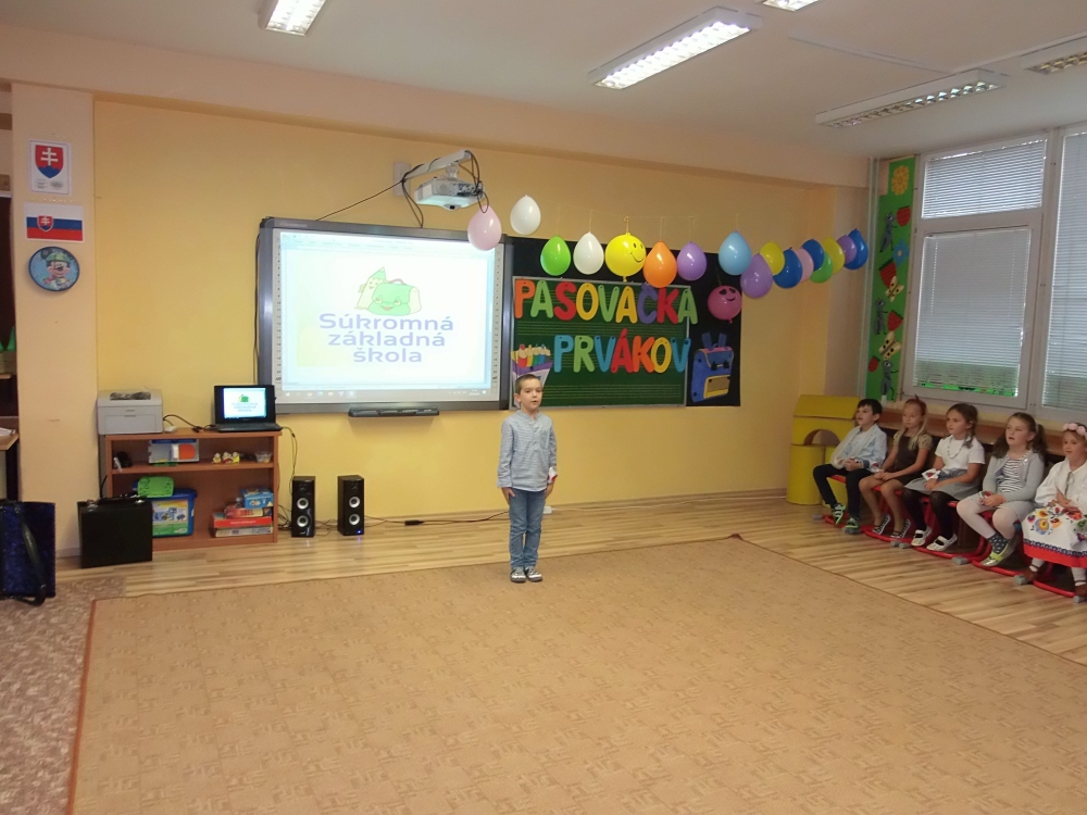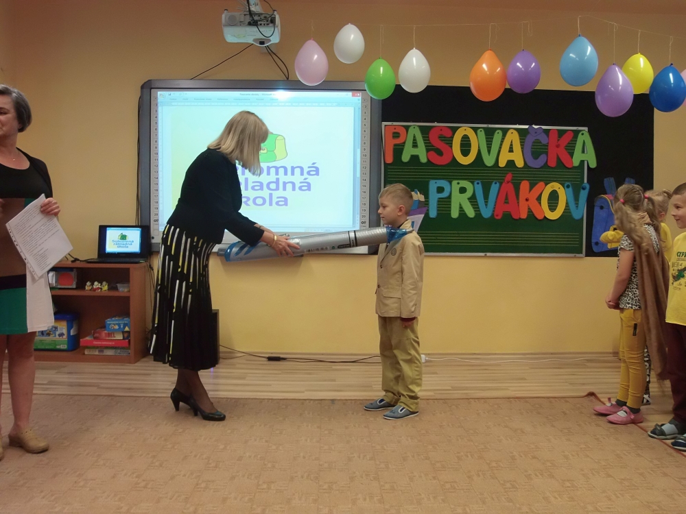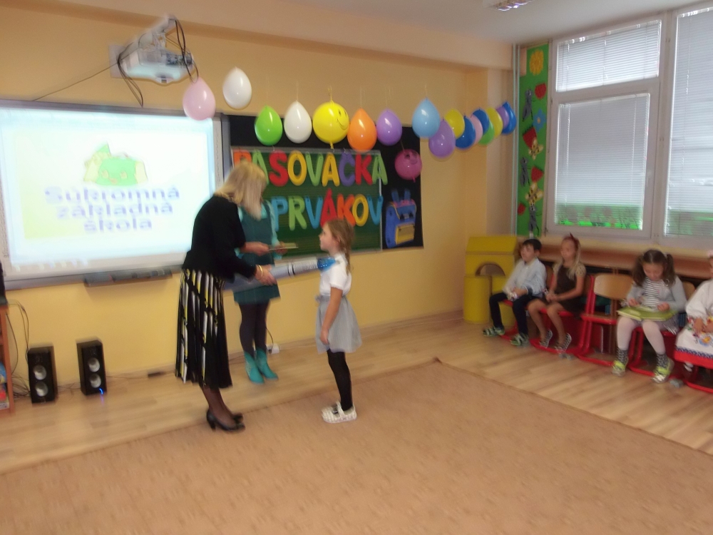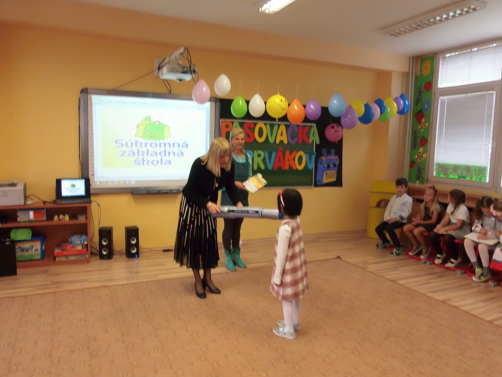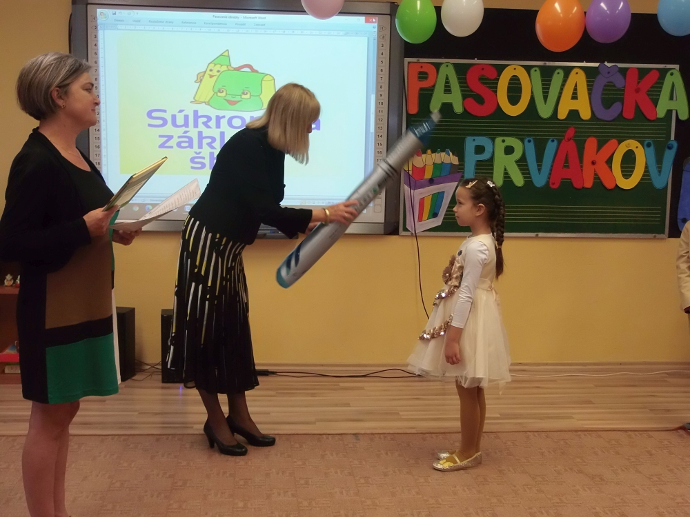 Ďakujeme pani riaditeľke za pasovanie, deťom, ktoré usilovne pracovali a trénovali a pani vychovávateľke a pánom vychovávateľom za výzdobu školského klubu, pani asistentkám za fotenie a kamerovanie, aby svoje deti videli aj rodičia. Prváci, sme na vás pyšné!