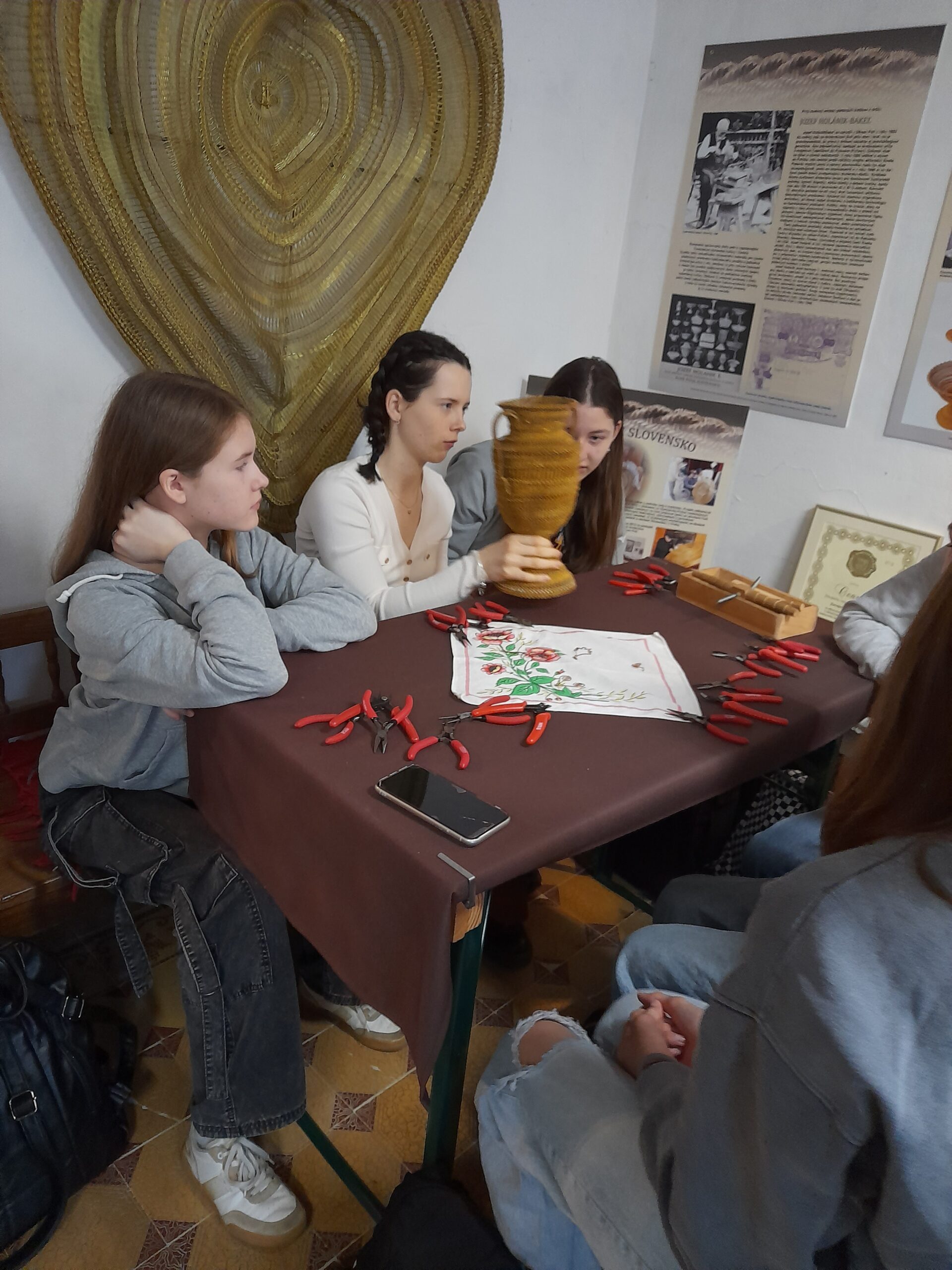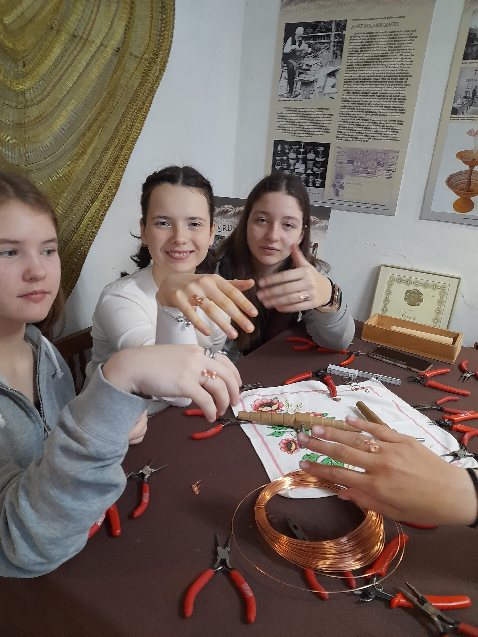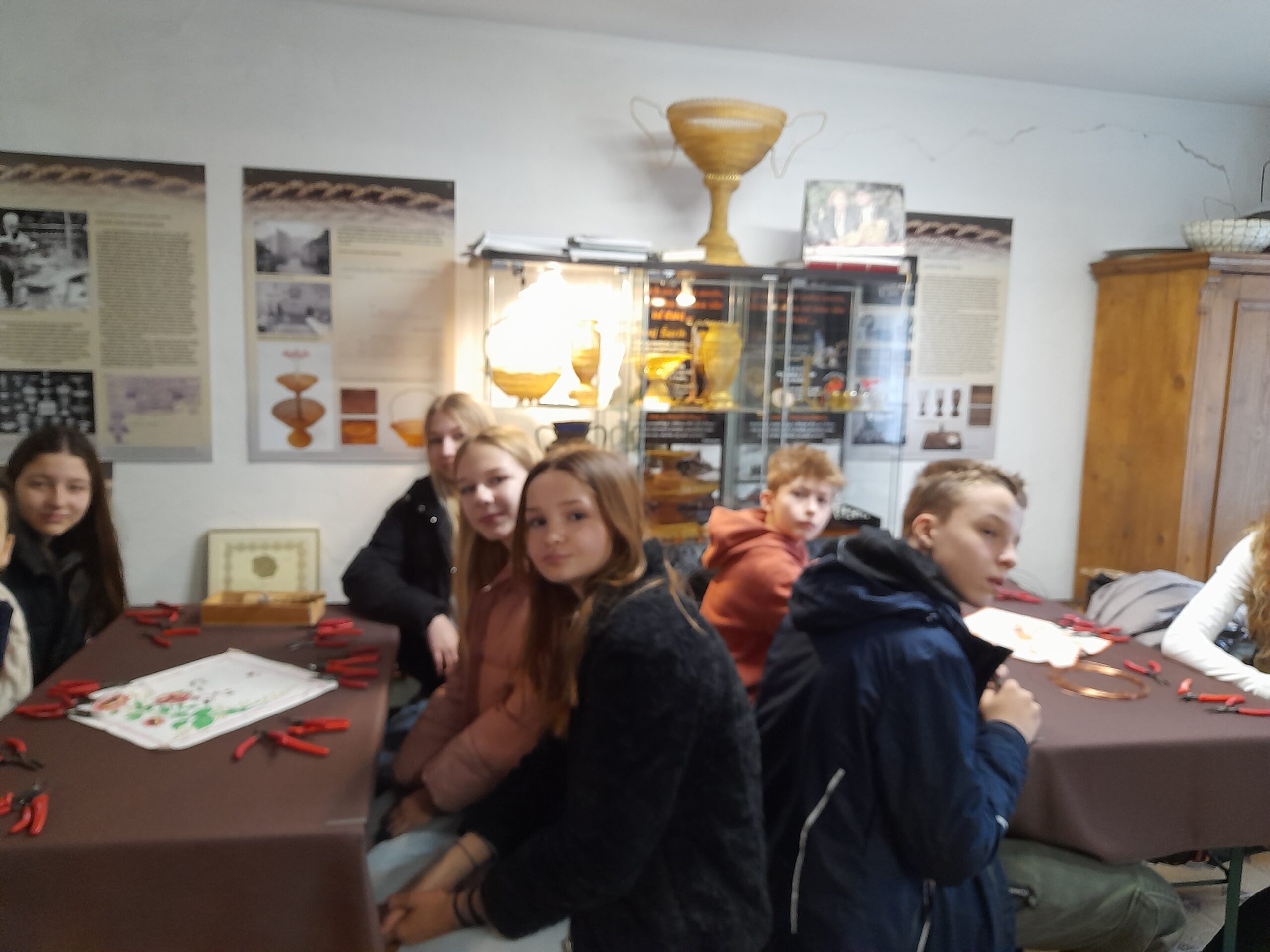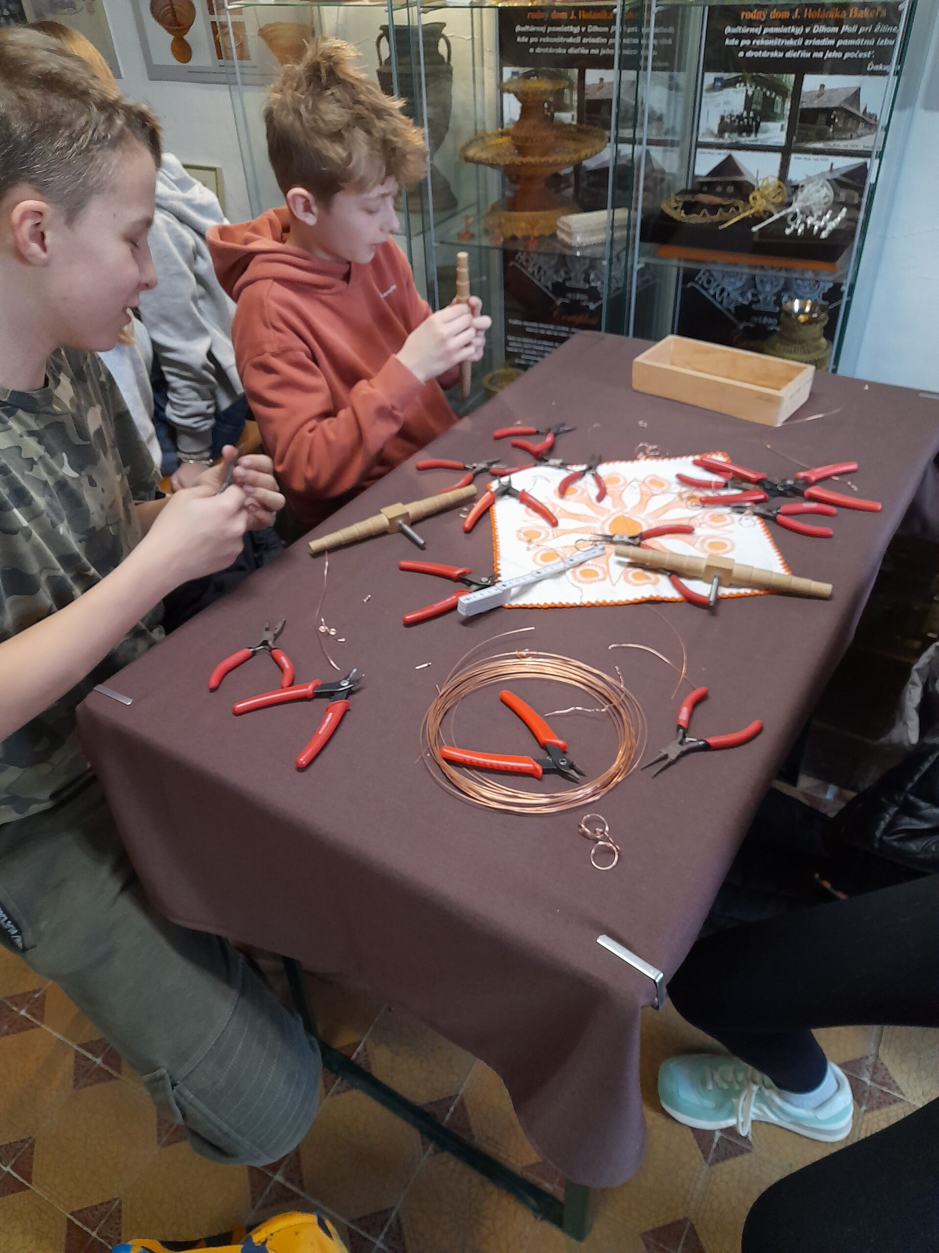 22.3.2024 sme sa s deviatakmi a siedmakmi vybrali po stopách slovenských drotárov do Dlhého Poľa. Vo viac ako storočnej drevenici, rodnom dome Jozefa Holánika Bakeľa, nás privítali tradične chlebom a soľou. Majster Juraj Šerík nám predstavil expozíciu a v rámci tvorivých dielní sme si mohli vyskúšať toto celosvetovo známe remeslo aj my sami. Ďalšia expozícia s históriou drotárstva a lektorským výkladom pani Cingelovej nás čakala v budove miestnej MŠ. A veruže bolo na čo pozerať! Pozlátené a postriebrené úžitkovo-dekoratívne výrobky boli dôkazom, že slovenskí drotári nás preslávili v mnohých krajinách a ocenenia na rodnom dome sú oprávnené. Z Dlhého Poľa sme odchádzali s vlastnoručne vyrobenými šperkami a pocitom, že jeden malý Slovák vo veľkom svete vďaka poctivej práci tu zanechal pre nás dôležité posolstvo…