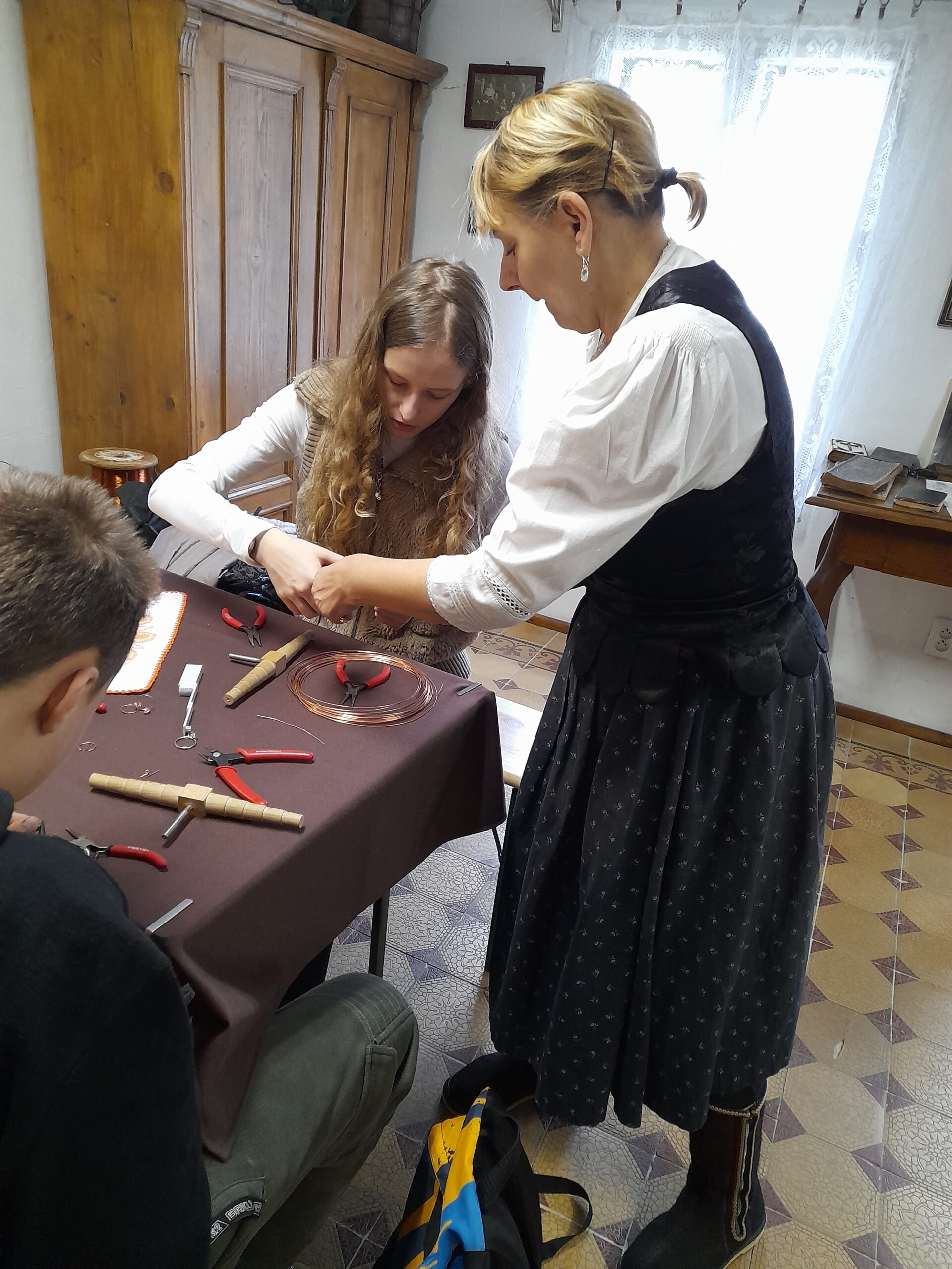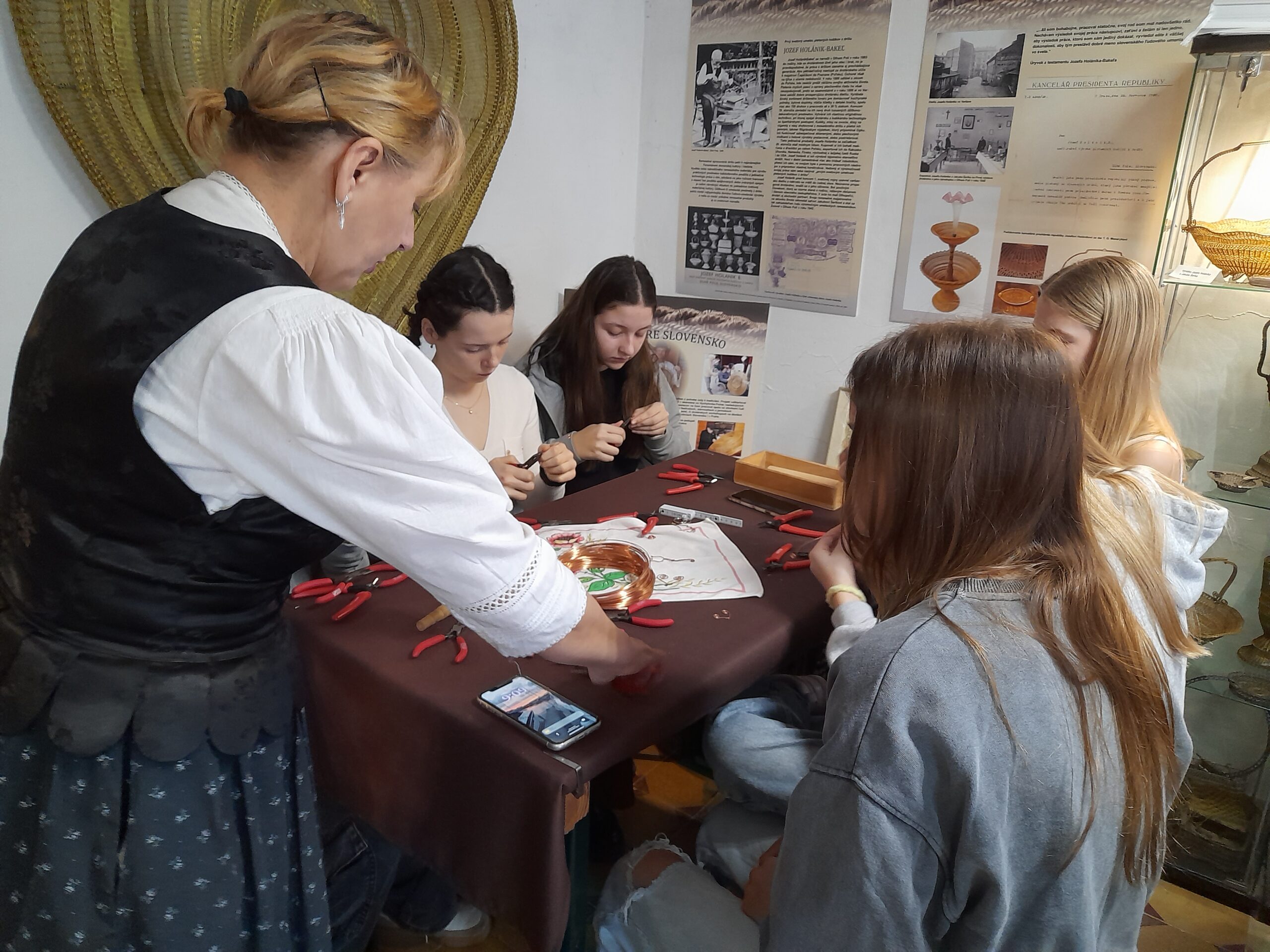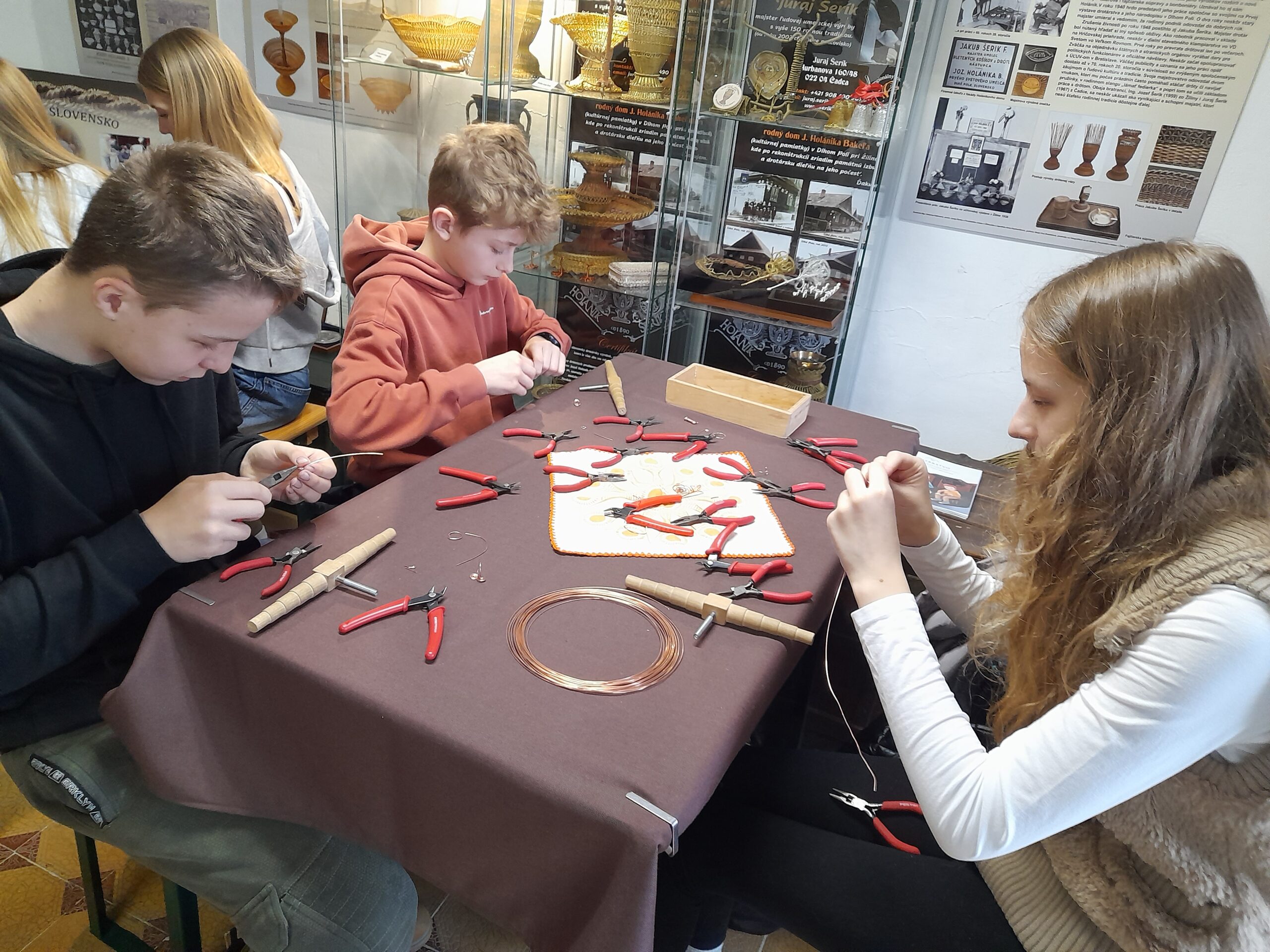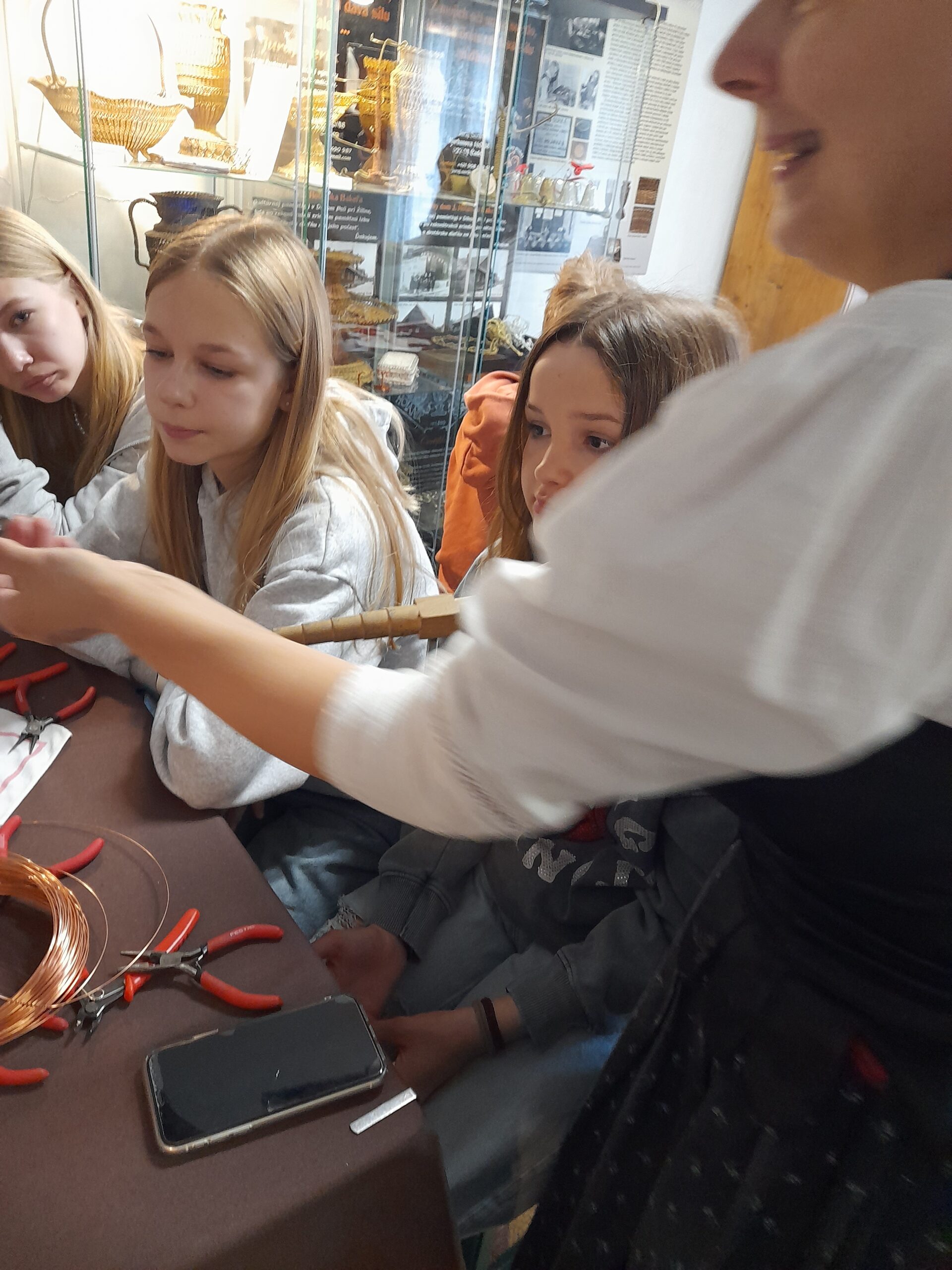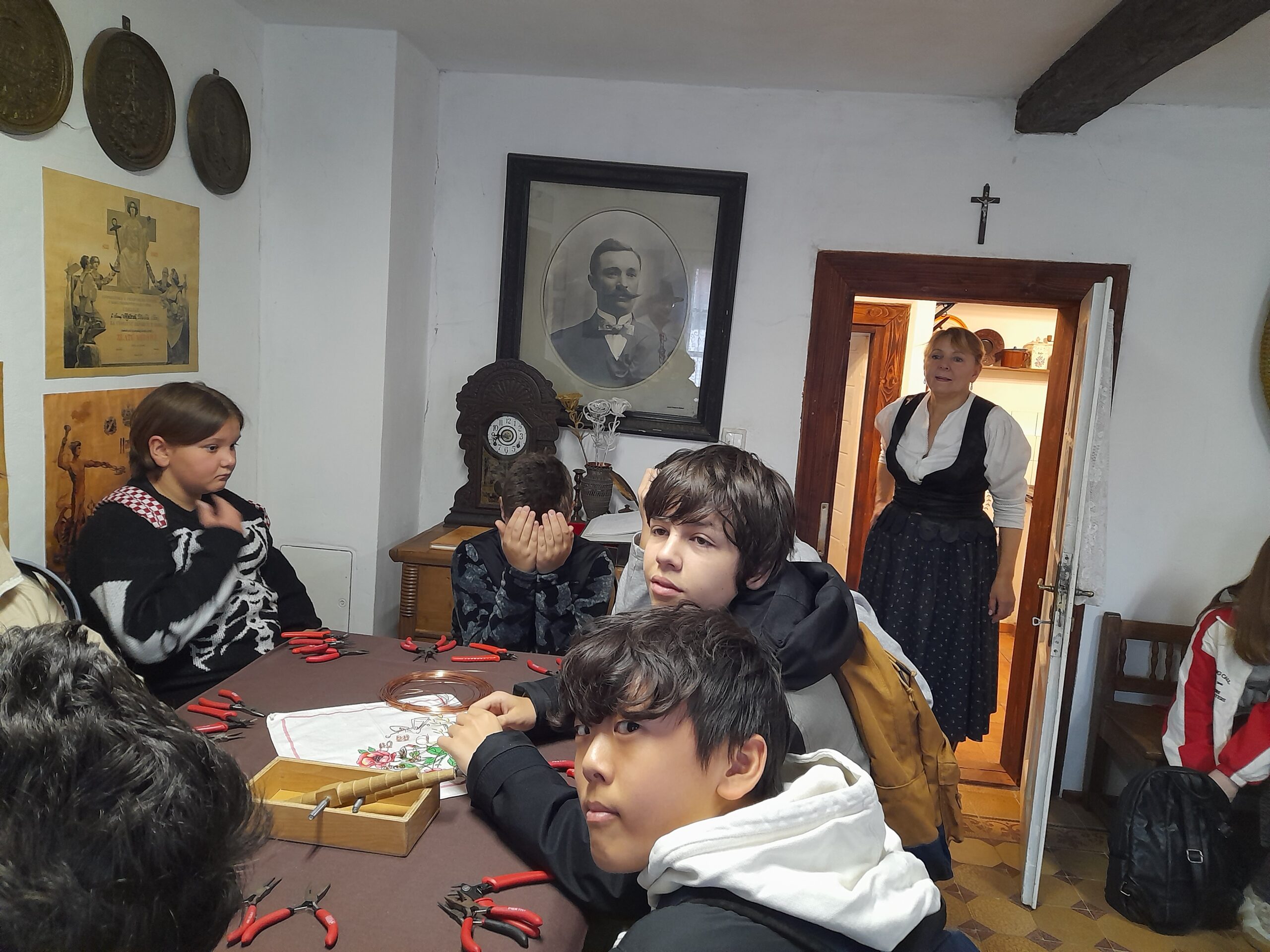22.3.2024 sme sa s deviatakmi a siedmakmi vybrali po stopách slovenských drotárov do Dlhého Poľa. Vo viac ako storočnej drevenici, rodnom dome Jozefa Holánika Bakeľa, nás privítali tradične chlebom a soľou. Majster Juraj Šerík nám predstavil expozíciu a v rámci tvorivých dielní sme si mohli vyskúšať toto celosvetovo známe remeslo aj my sami. Ďalšia expozícia s históriou drotárstva a lektorským výkladom pani Cingelovej nás čakala v budove miestnej MŠ. A veruže bolo na čo pozerať! Pozlátené a postriebrené úžitkovo-dekoratívne výrobky boli dôkazom, že slovenskí drotári nás preslávili v mnohých krajinách a ocenenia na rodnom dome sú oprávnené. Z Dlhého Poľa sme odchádzali s vlastnoručne vyrobenými šperkami a pocitom, že jeden malý Slovák vo veľkom svete vďaka poctivej práci tu zanechal pre nás dôležité posolstvo…