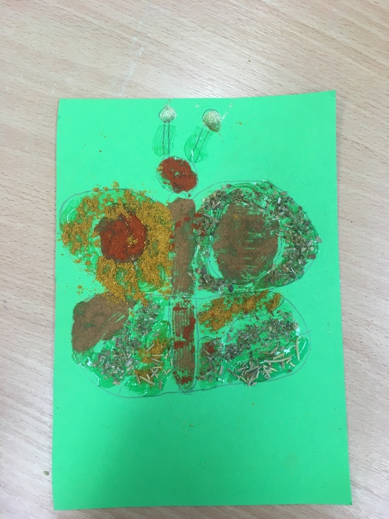 V klube Motýle si deti vyskúšali prácu s netradičným a voňavím materiálom. Pomocou korenín a sušených byliniek vytvárali koláže, spoznávali, voňali a ochutnávali rôzne farebné koreniny.