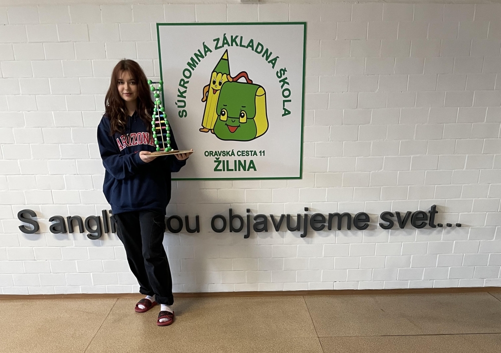 V rámci súťaže vedecký kuriér – projektová časť sa podarilo žiačke Rebece Matušovej z triedy VIII.EA získať 1. miesto zo všetkých zapojených škôl zo Slovenska. Žiačkine dielo ohúrilo hodnotiacu komisiu natoľko, že sa rozhodli ju pozvať do svojho laboratória na Fakultu medicíny, Univerzity Komenského v Bratislave. Podľa vyjadrení členov komisie je dielo “jedným z najlepších za posledné roky.” Veľmi pekne ďakujeme za krásnu reprezentáciu!