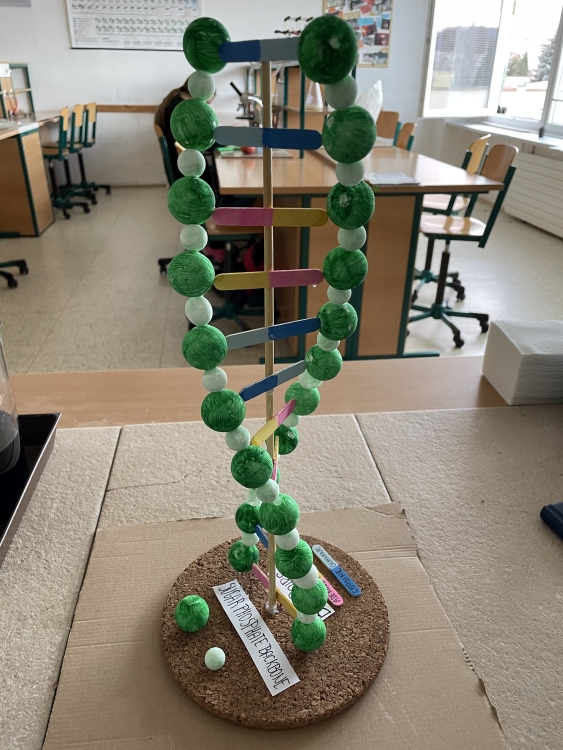 Na hodinách biológie sme spolu s ôsmakmi a deviatakmi nazreli do sveta našej DNA. Pozorovali sme jej štruktúru a naše pozorovanie sme sa rozhodli uplatniť aj pri projektovej práci. Výtvor sa zaradil aj do súťaže organizovanej Ústavom Molekulárnej Biomedicíny Lekárskej fakulty Univerzity Komenského. Žiačke VIII.EA triedy, Rebece Matušovej, sa podarila vizualizácia DNA v podobe 3 D modelu naozaj na výbornú. I takýmto spôsobom sa žiaci môžu aktívne pripravovať na svoju budúcu profesiu. Posúďte sami. Ďakujeme a držíme palce pri vyhodnotení súťaže.
