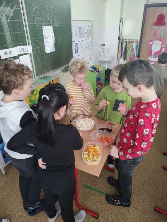 Prváci sa na hodine prvouky učili o zmysloch a zisťovali, aké chute existujú a čo im chutí a čo nie.