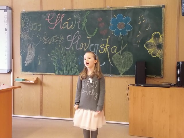 <p>Dňa 23. 3. 2016 sa uskutočnilo &scaron;kolsk&eacute; kolo spev&aacute;ckej s&uacute;ťaže Sl&aacute;vik. Z&uacute;častnilo sa jej spolu 15 s&uacute;ťažiacich. V 1. kateg&oacute;rii (1.-3. ročn&iacute;k) 1. miesto obsaden&eacute; nebolo, 2. miesto z&iacute;skala Ivonka Tak&aacute;čov&aacute; z triedy I.CHR a 3. miesto Tamarka Tomicov&aacute; z I.CHR a Rodoplho Knorst da Silva z triedy I.VČ.<br /> V 2. kateg&oacute;rii (4.-6. ročn&iacute;k) obsadila 1. miesto Ninka Isten&iacute;kov&aacute; z triedy IV.LN, 2. miesto Danha Kim z triedy IV.LN a 3. miesto Rebeka Vantarov&aacute; z triedy VI.SA. V&scaron;etk&yacute;m v&yacute;hercom gratulujeme a Ninke budeme držať palce v ďal&scaron;om kole</p>