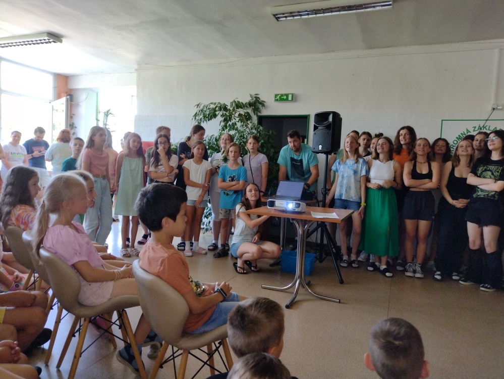 V dnešný deň sme sa stretli, aby sme v cudzích jazykoch (ANJ, RUJ, SJA) prezentovali svoje zručnosti vo forme spievania piesní pre žiakov primárneho vzdelávania.