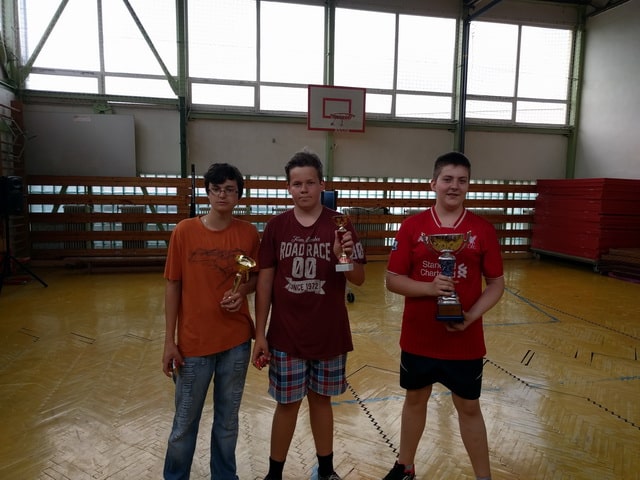 <p>Dňa 3.6.2016 sa v na&scaron;ej &scaron;kole konal turnaj v stolnom tenise, kde si medzi sebou zmerali sily len t&iacute; najlep&scaron;&iacute;. Po ťažkom boji o poh&aacute;r sa nakoniec umiestnili žiaci nasledovne:<br /> <strong>1. miesto</strong> – Matej Hora<br /> <strong>2. miesto</strong> – Dominik Baďura<br /> <strong>3. miesto</strong> – Samuel Uher</p>