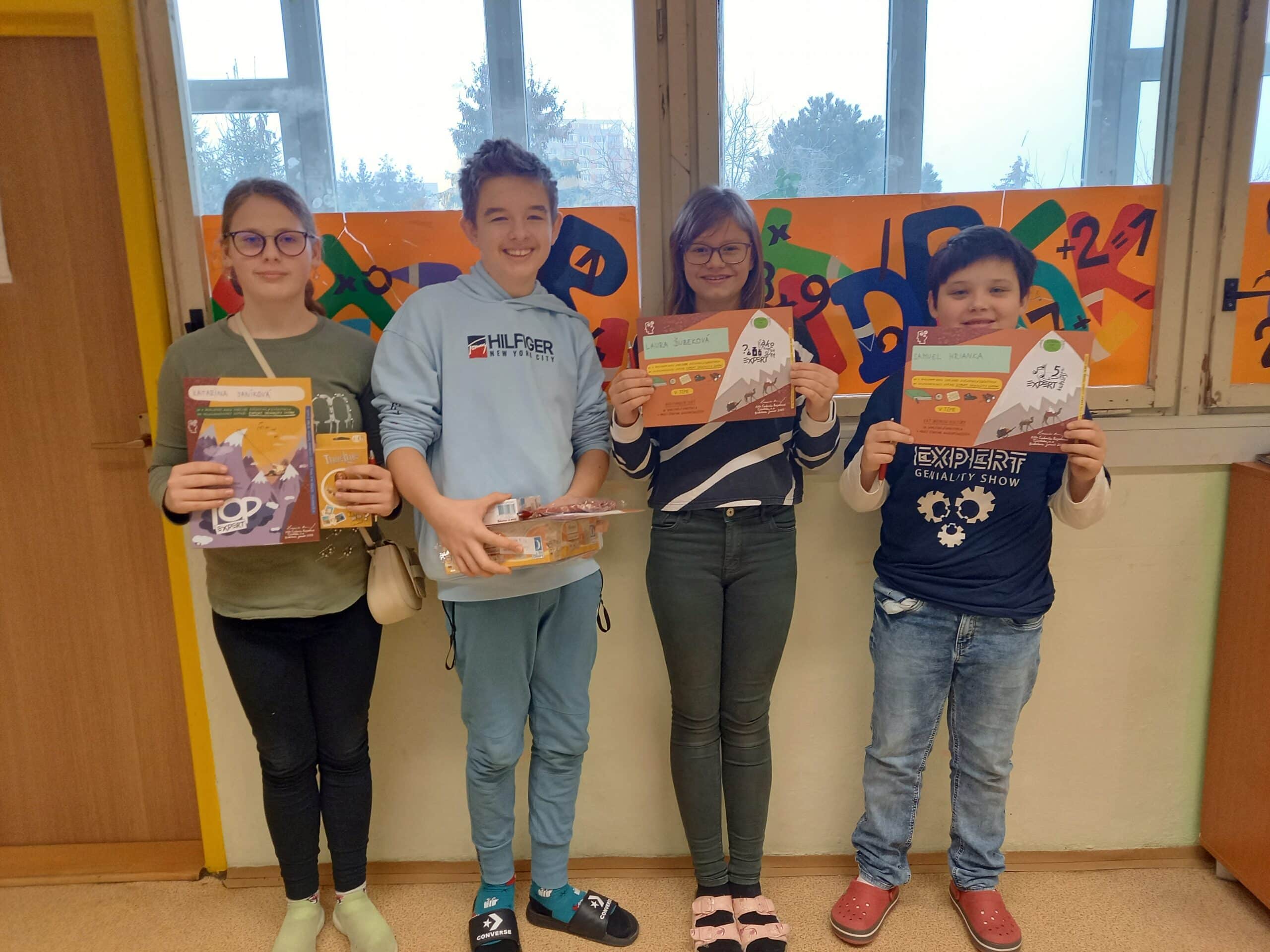 Aj tento školský rok sa 35 našich žiakov zapojilo do súťaže Expert geniality show. Mohli si porovnať svoje vedomosti a logické myslenie s 11 796 žiakmi zo 714 škôl z celého Slovenska. Najúspešnejším bol náš žiak 6.ročníka, Filip Frajt, ktorý sa umiestnil celkovo na 3. mieste spomedzi 1495 súťažiacich žiakov z celého Slovenska. Filip sa umiestnil v prvej štvrtine najúspešnejších v témach Ako funguje svet a Päť jazykov kultúry a získal taktiež titul TOP Expert. V téme Ako funguje svet sa 3 naši žiaci umiestnili v prvej štvrtine najúspešnejších, a to K. Janíková, L.Ďubeková a F.Frajt. V téme Päť jazykov kultúry sa 7 našich žiakov umiestnilo v prvej štvrtine najúspešnejších, a to T. Palková, M. Kurakin, Tereza Trippé, S. Koščová, K. Janíková, S.Hrianka a F. Frajt. V téme Do you speak English sa v prvej štvrtine umiestnili F. Krutil, E.Vavreková, J.Ďuračíková, D.Sidor, P.Slašťan a L.Vavreková. V téme Mozgolamy titul TOP Expert získali F.Krutil, M.Zajac, Tamara Trippé, J.Ďuračíková a D.Sidor. V téme Tajomstvá prírody boli úspešní E.Vavreková, Tamara Trippé a L.Vavreková. V téme Svetobežník bol úspešným riešiteľom M.Zajac, v téme Góly body sekundy M.Chobot, A.Lichner a R.Pleško. Ostatní žiaci získali diplom účastníka. Srdečne im gratulujeme.