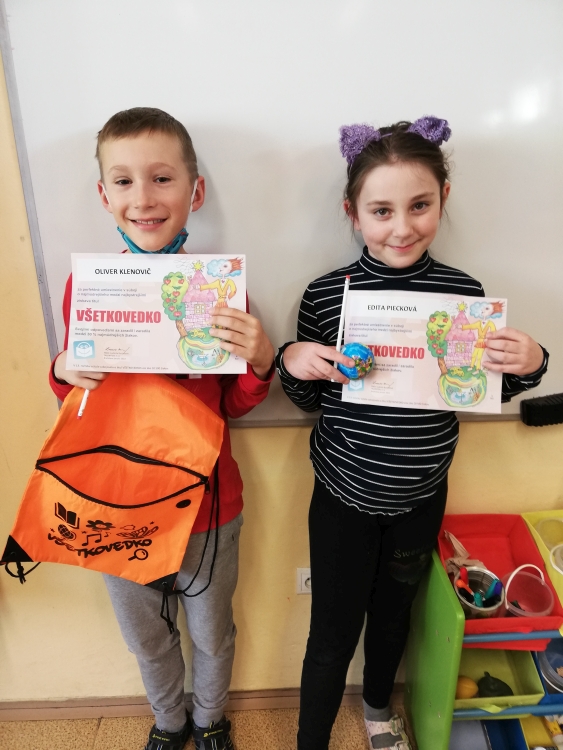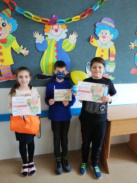 Súťaž Všetkovedko sa uskutočnila v utorok 30. novembra 2021. Táto súťaž je naozaj jedinečná. Súťažiaci z 2., 3. a 4. ročníka si preverujú svoje vedomosti z rôznych oblastí: vlastivedy, prírodovedy, slovenského jazyka a literatúry, matematiky, anglického jazyka, informatickej, dopravnej, hudobnej a výtvarnej výchovy. Tretiaci a štvrtáci majú 40 minút na zodpovedanie 30 otázok. Druháci za 40 minút odpovedajú na 24 otázok. Preto sa tešíme, že sa do tejto súťaže tento rok zapojilo 35 detí. Všetci úspešní získali titul „Všetkovedko“. Medzi deti, ktoré v súťaži odpovedali na všetky otázky správne, sa v tomto ročníku zaradil aj náš druháčik Šimon Palko z triedy 2.LN, ktorý sa dostal až do Galérie slávy. Všetkým srdečne gratulujeme!