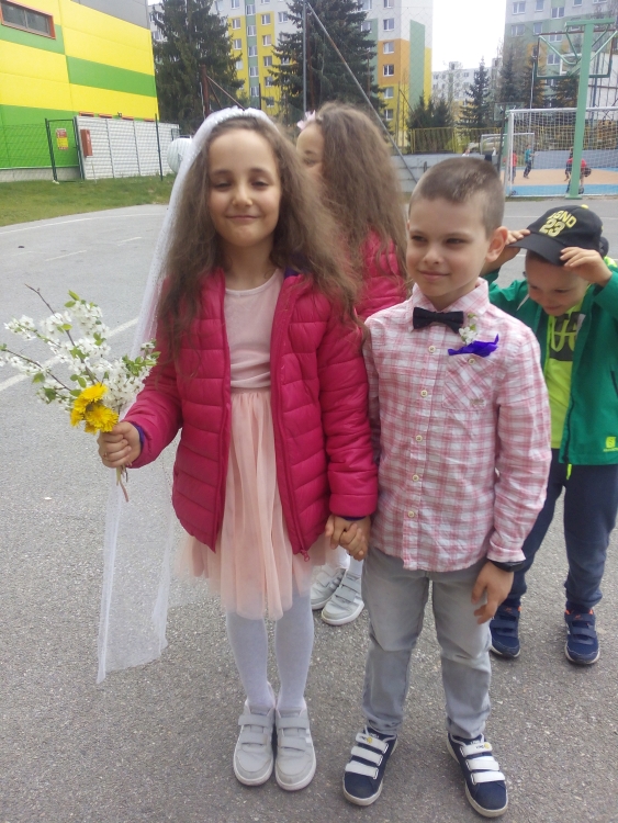 V klube Delfíny sme na žiadosť detí zorganizovali “svadobný obrad” pre našich malých novomanželov 🙂 “Svadobný obrad” sa konal pod holým nebom na školskom dvore
