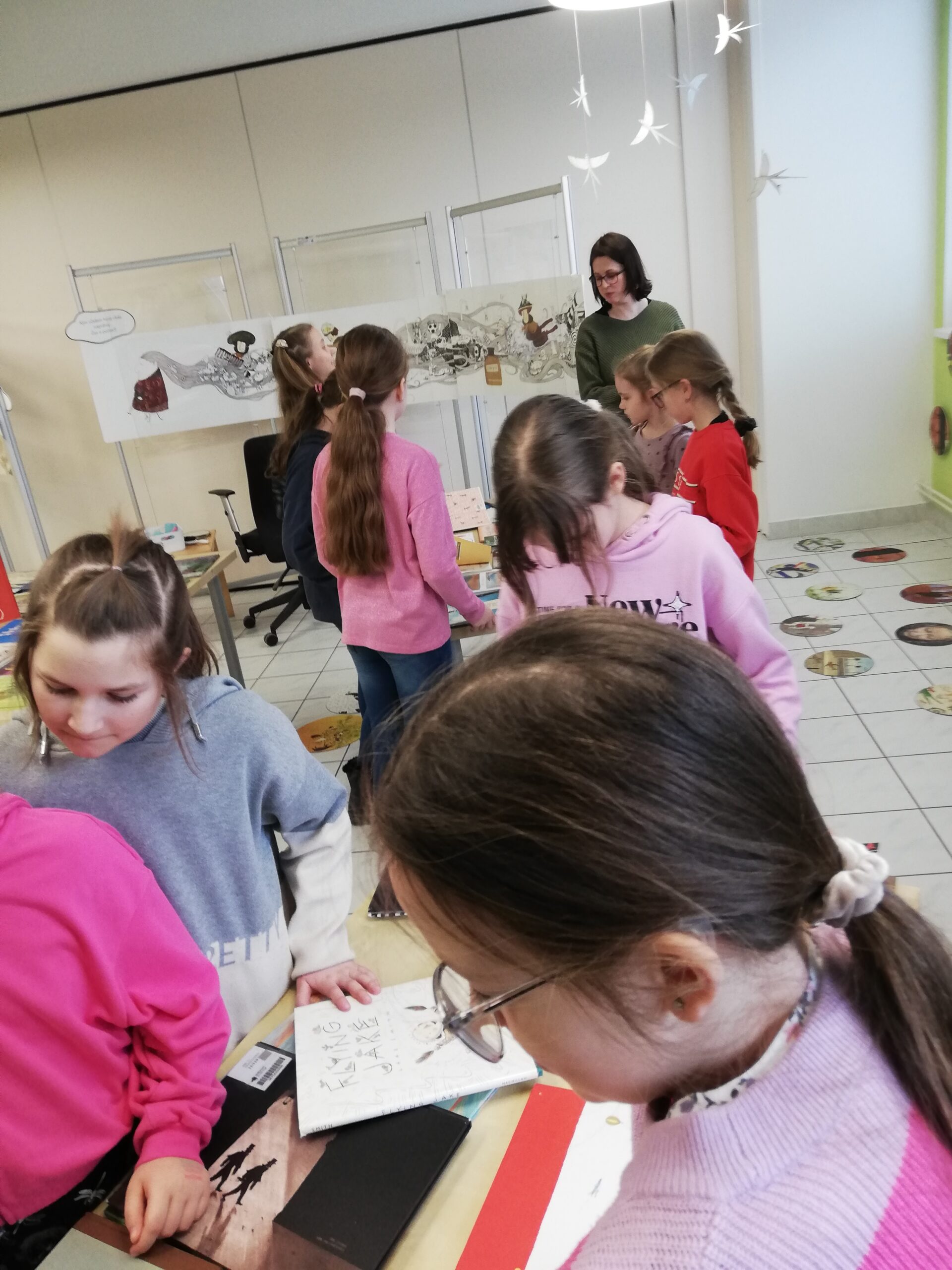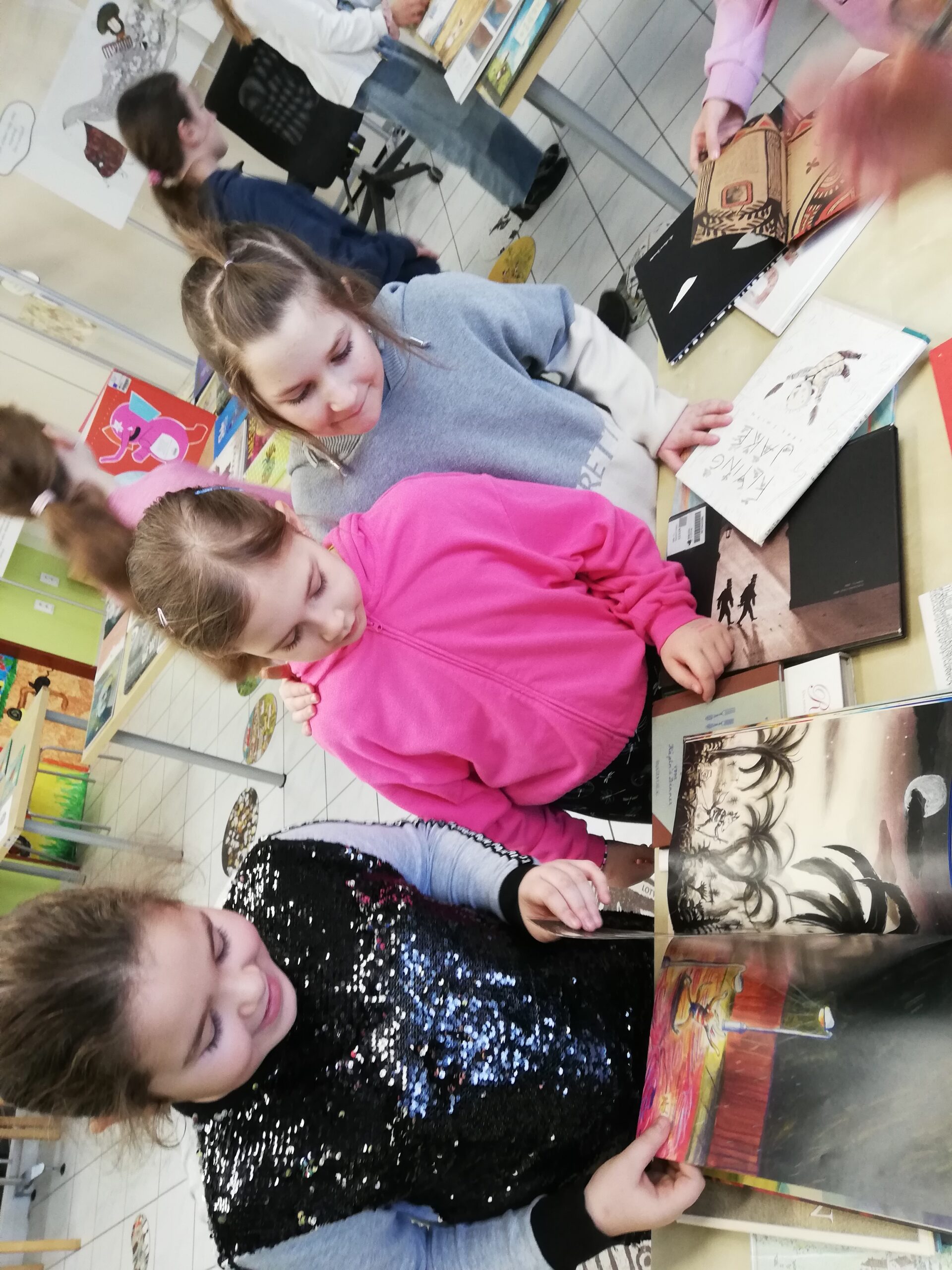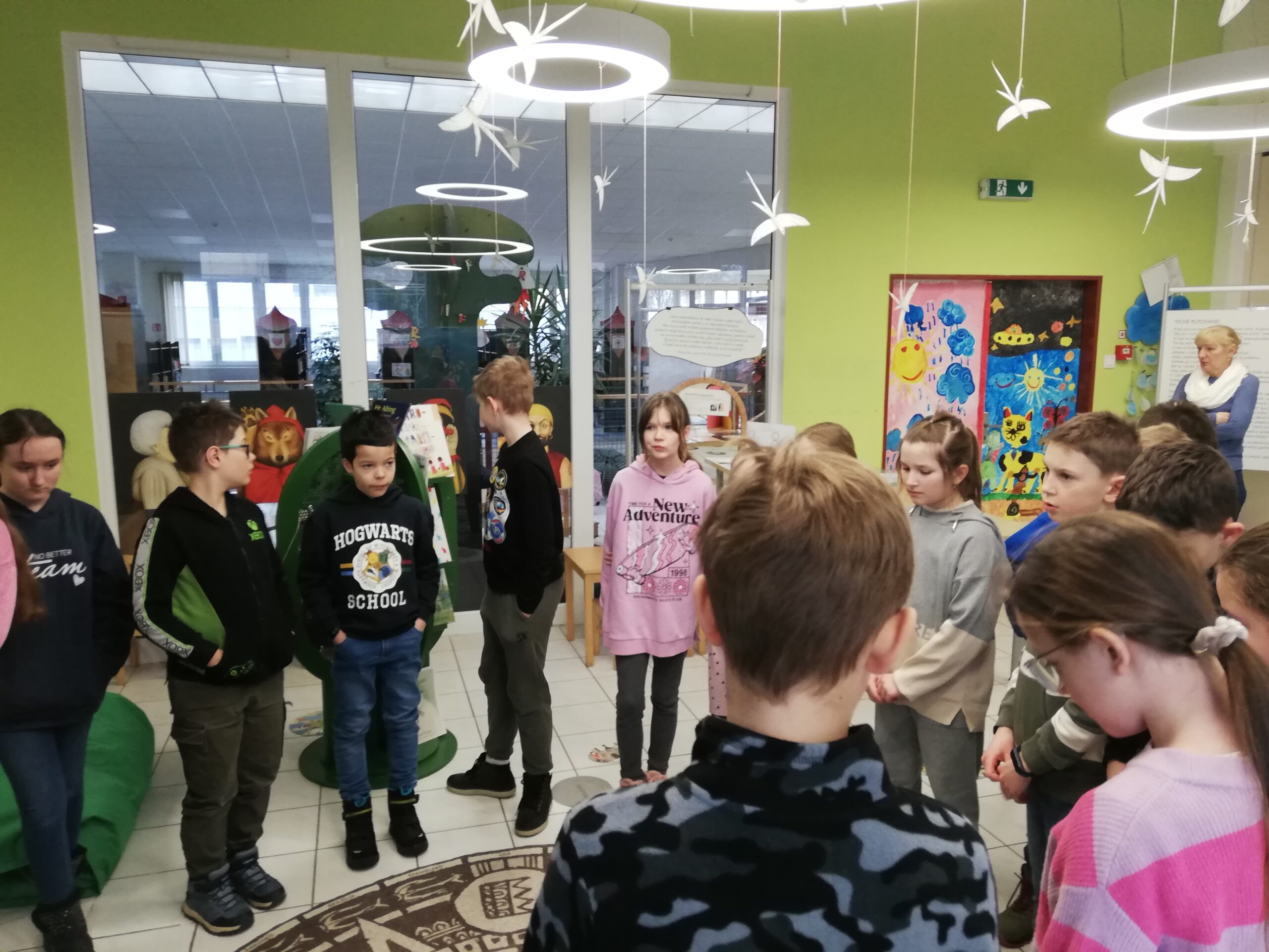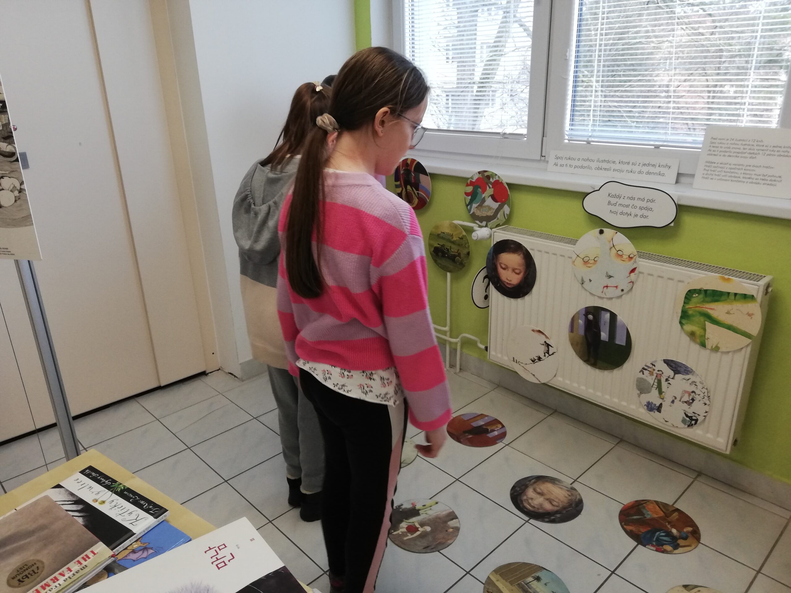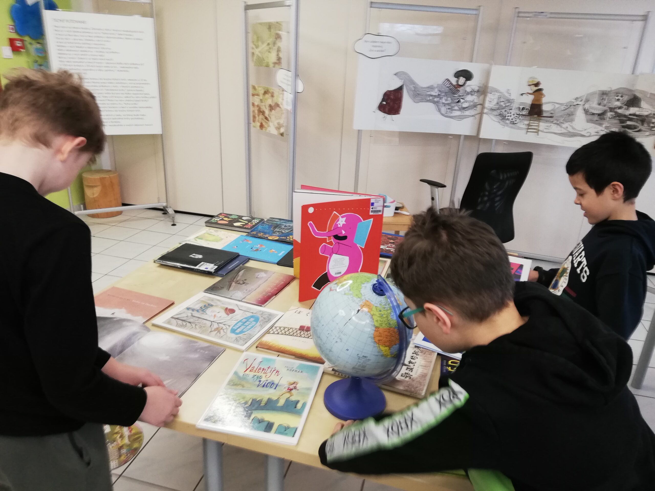 y – štvrtáci v rámci Týždňa slovenských knižníc výstavu Tiché putovanie z dielne BIBIANY, medzinárodného domu umenia pre deti v Bratislave. Využili sme jedinečnú príležitosť čítania kníh z 35 krajín z celého sveta. Stačilo sa dobre zadívať, lebo všetky príbehy boli ukryté v obrázkoch, bez slov. Taktiež deti zaujali aj pripravené zaujímavé aktivity.