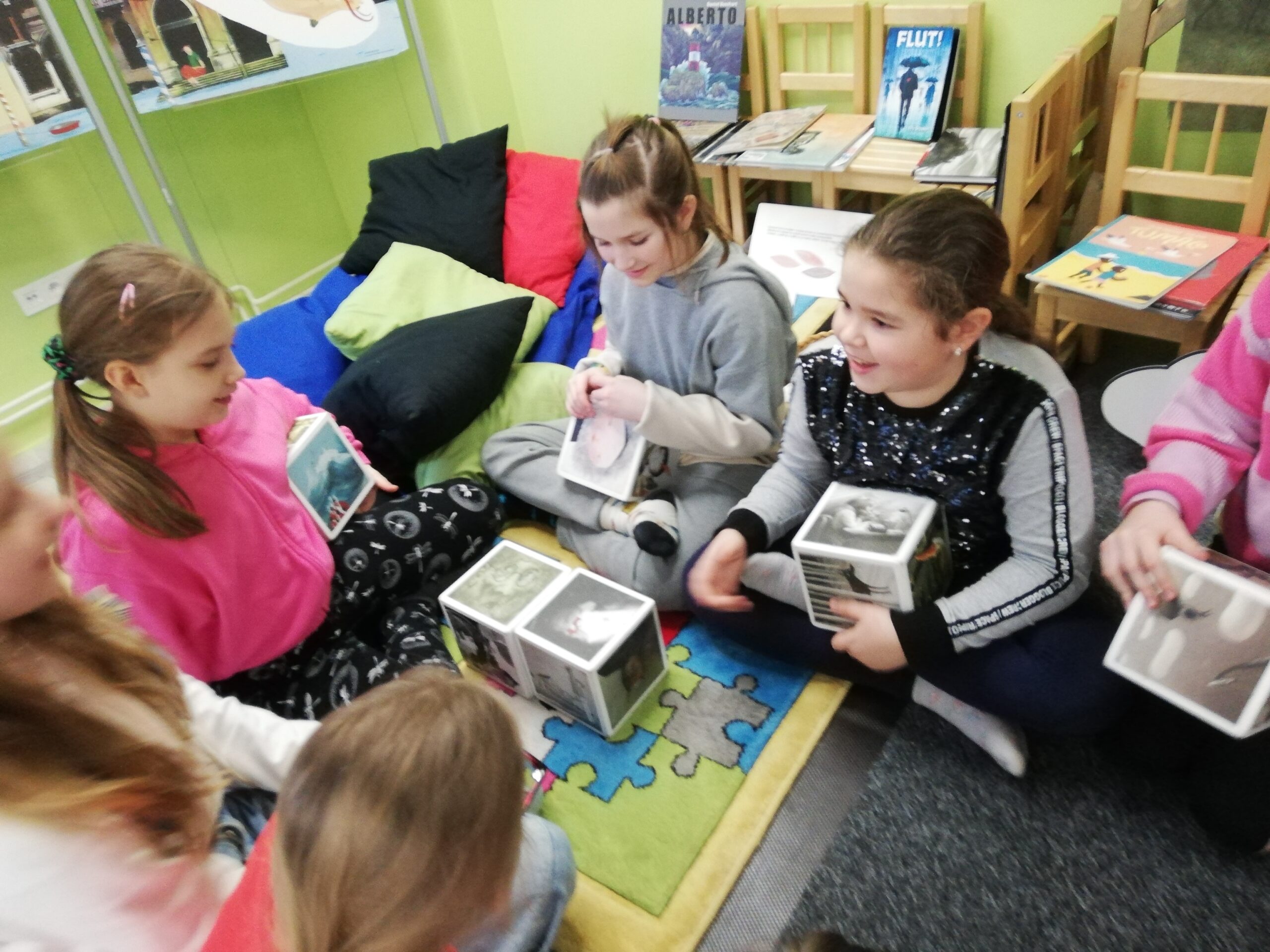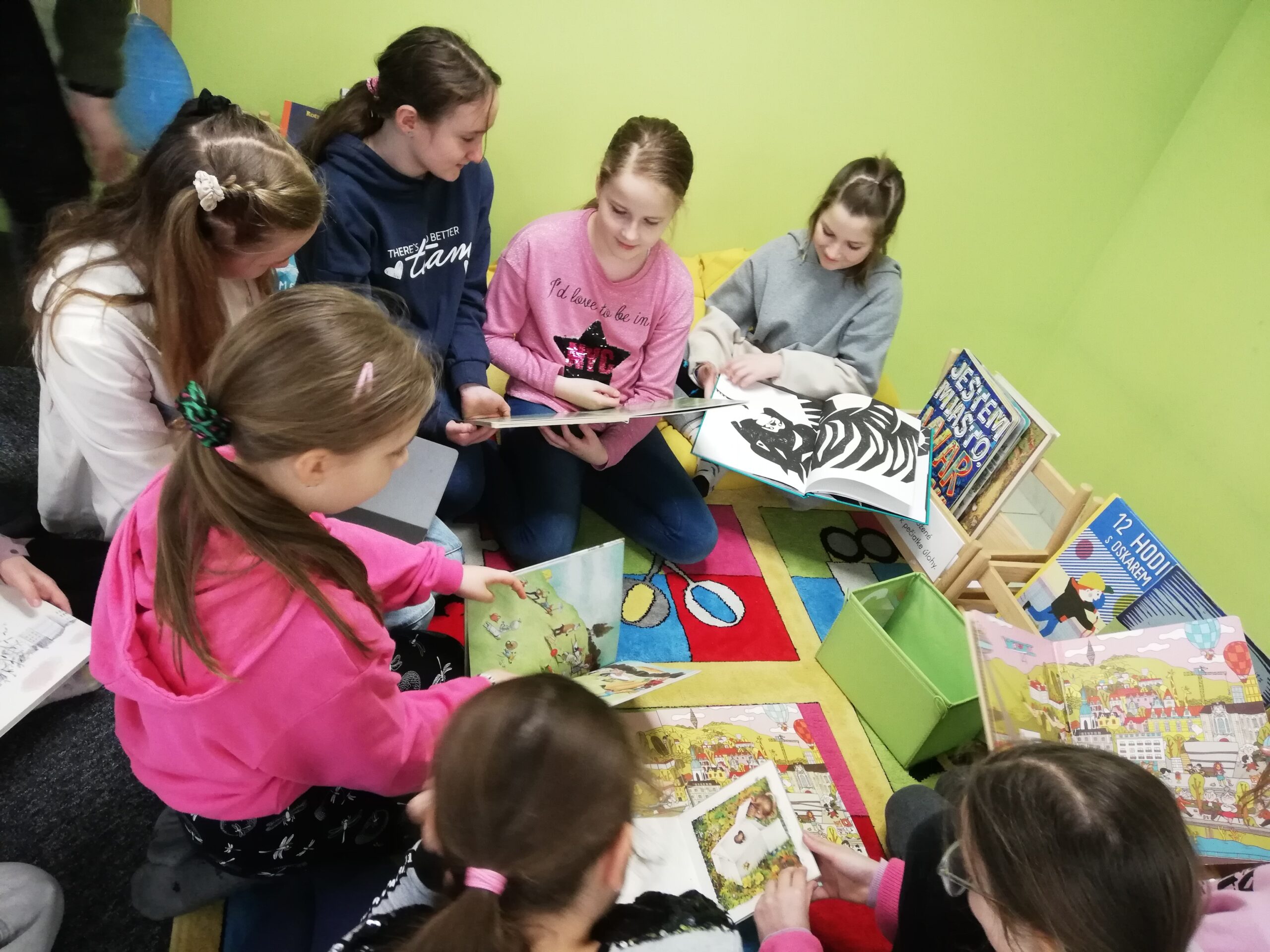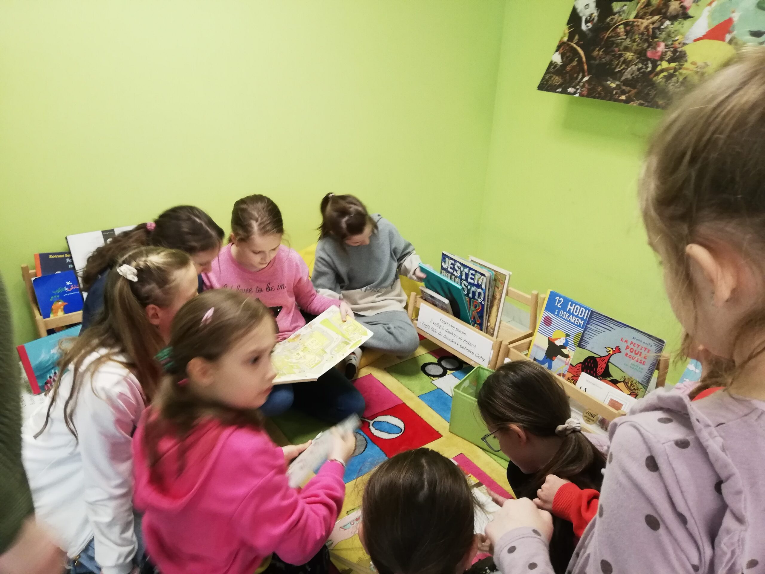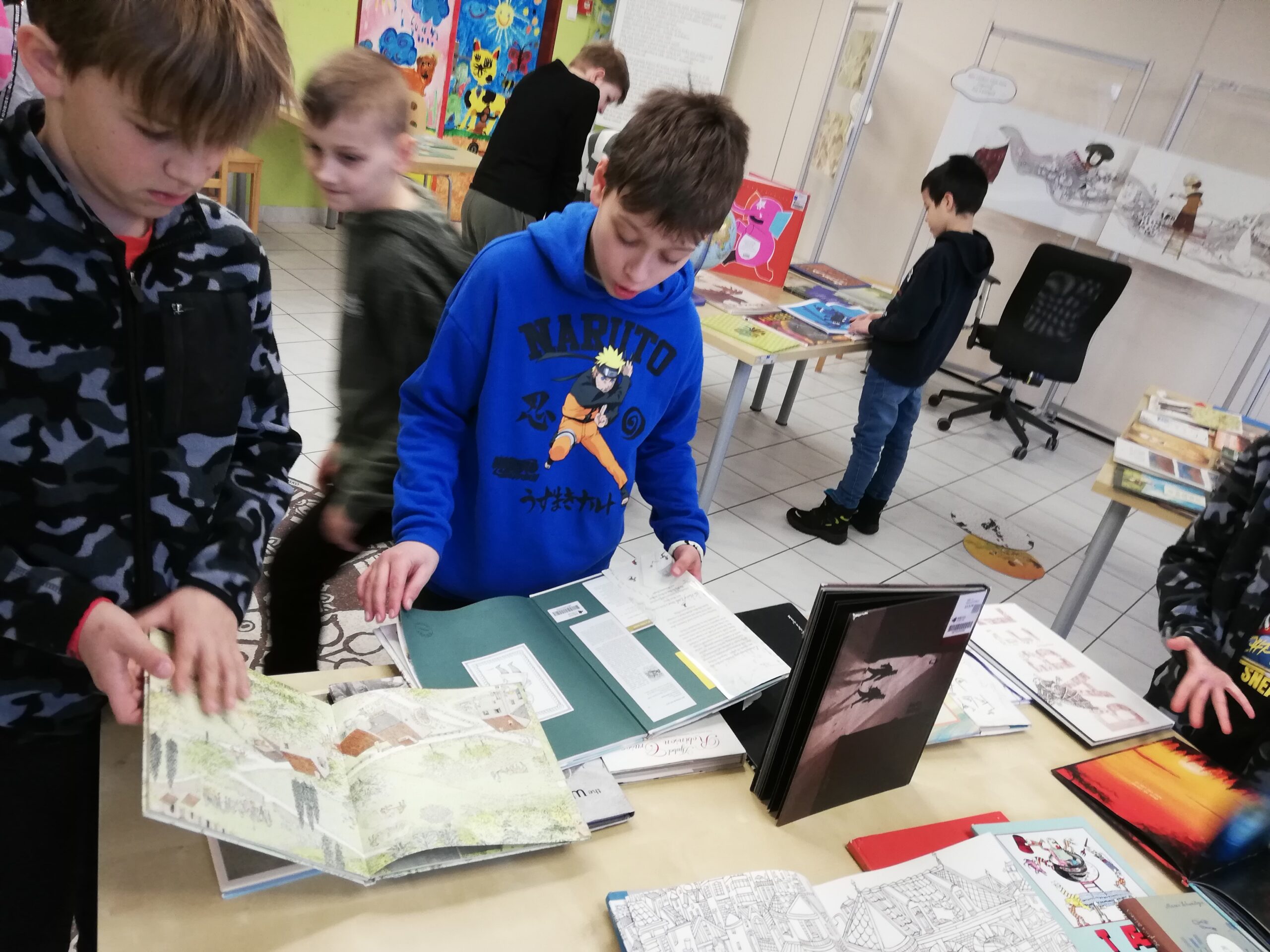 y – štvrtáci v rámci Týždňa slovenských knižníc výstavu Tiché putovanie z dielne BIBIANY, medzinárodného domu umenia pre deti v Bratislave. Využili sme jedinečnú príležitosť čítania kníh z 35 krajín z celého sveta. Stačilo sa dobre zadívať, lebo všetky príbehy boli ukryté v obrázkoch, bez slov. Taktiež deti zaujali aj pripravené zaujímavé aktivity.