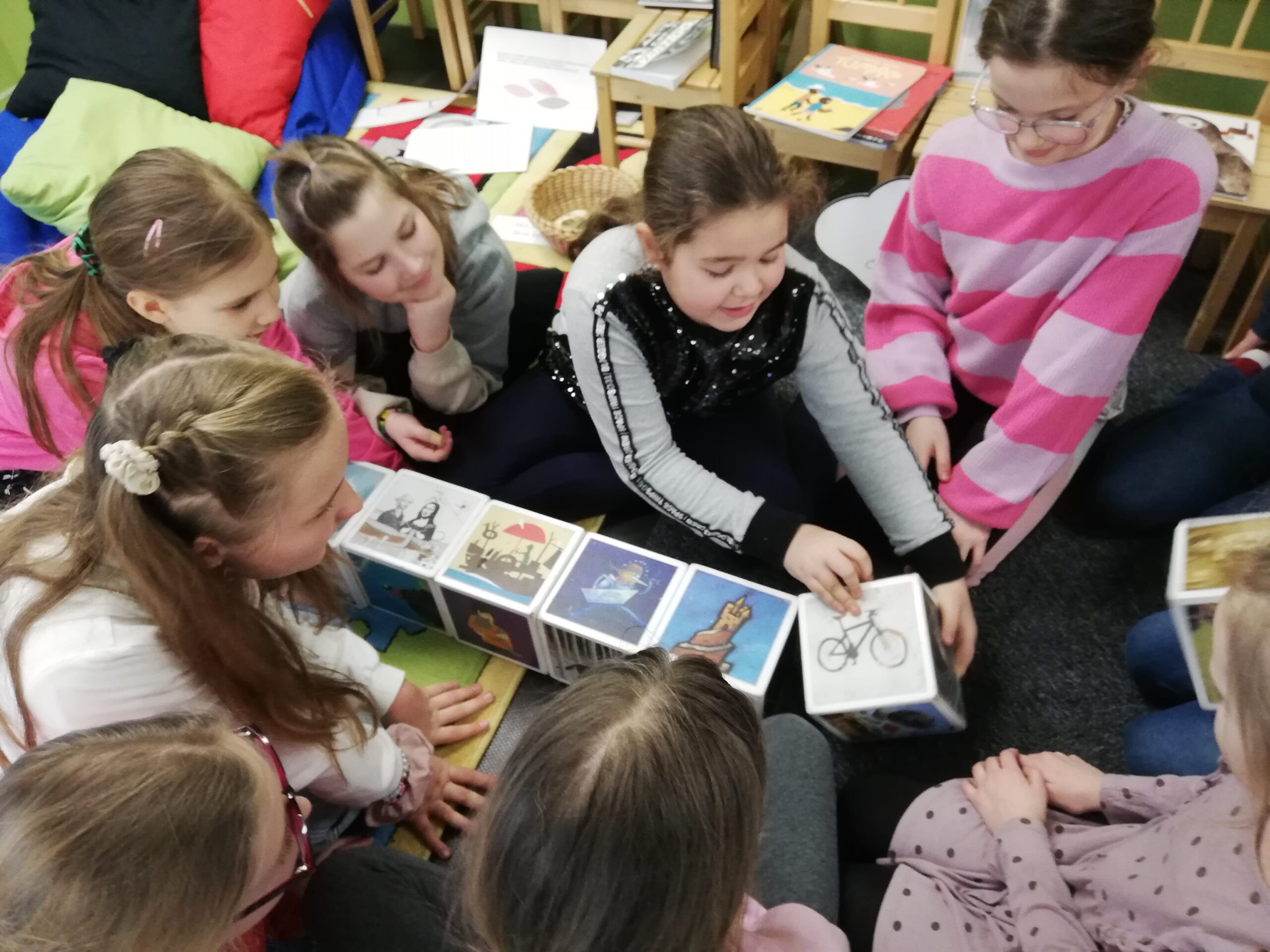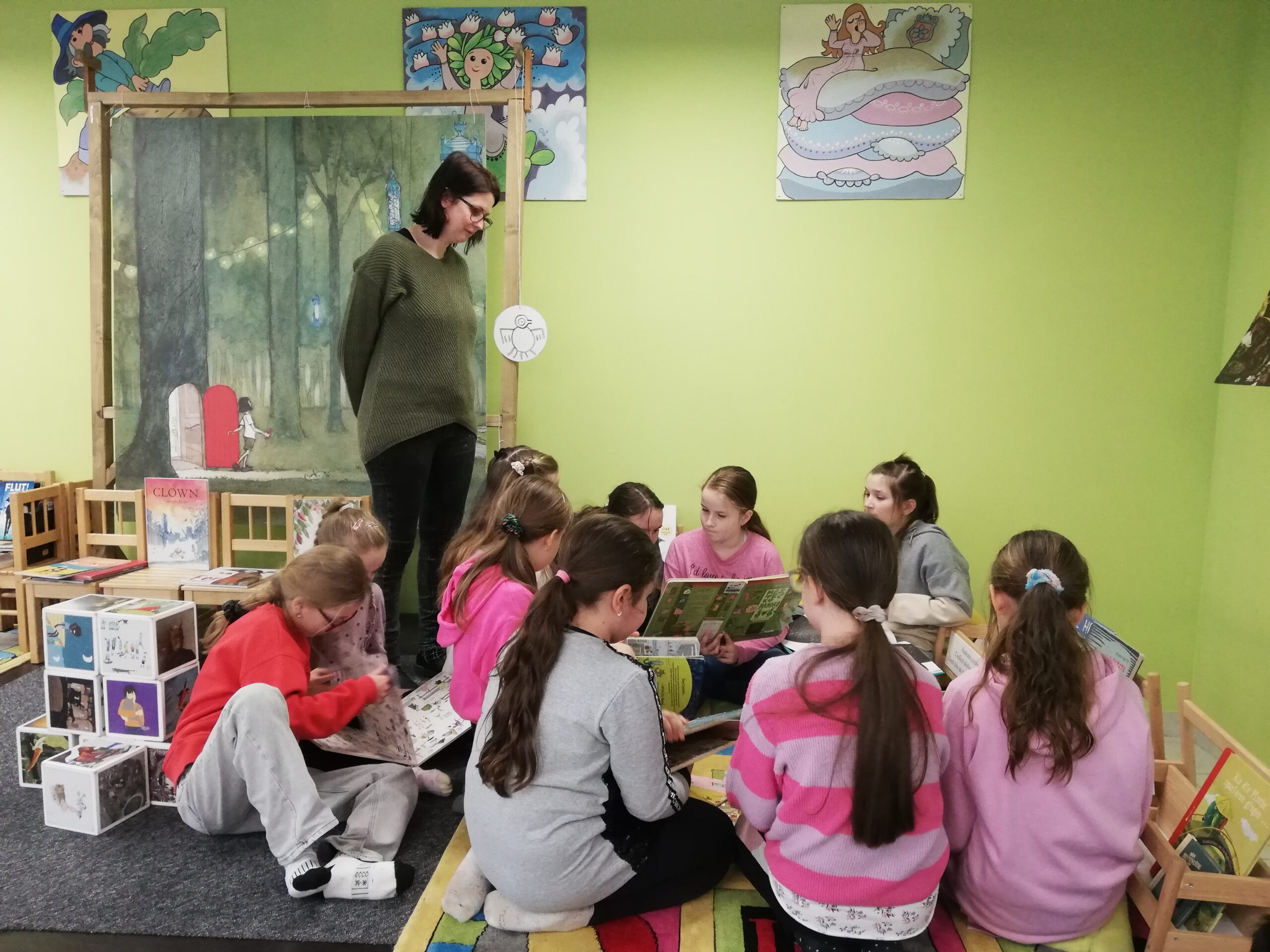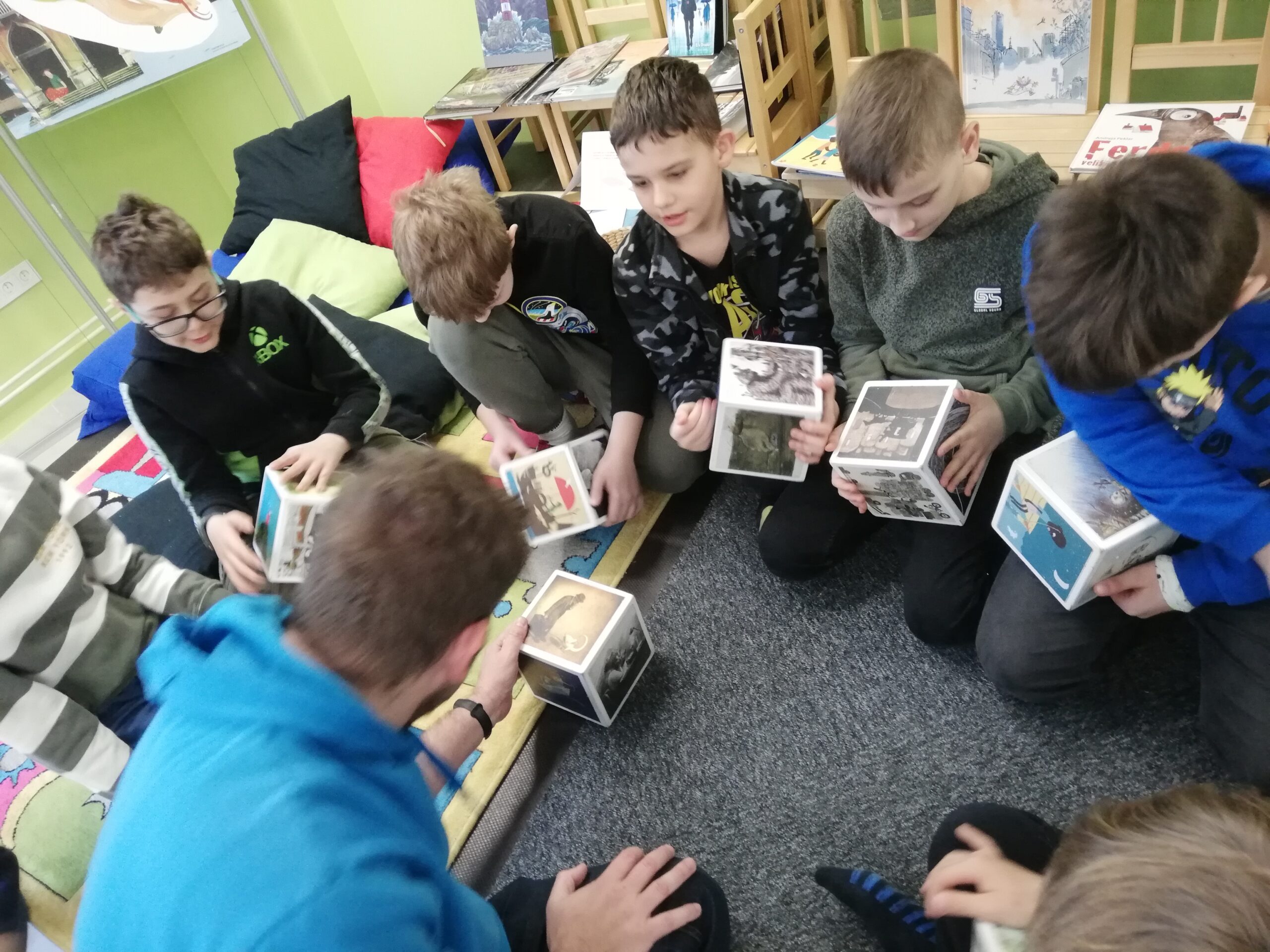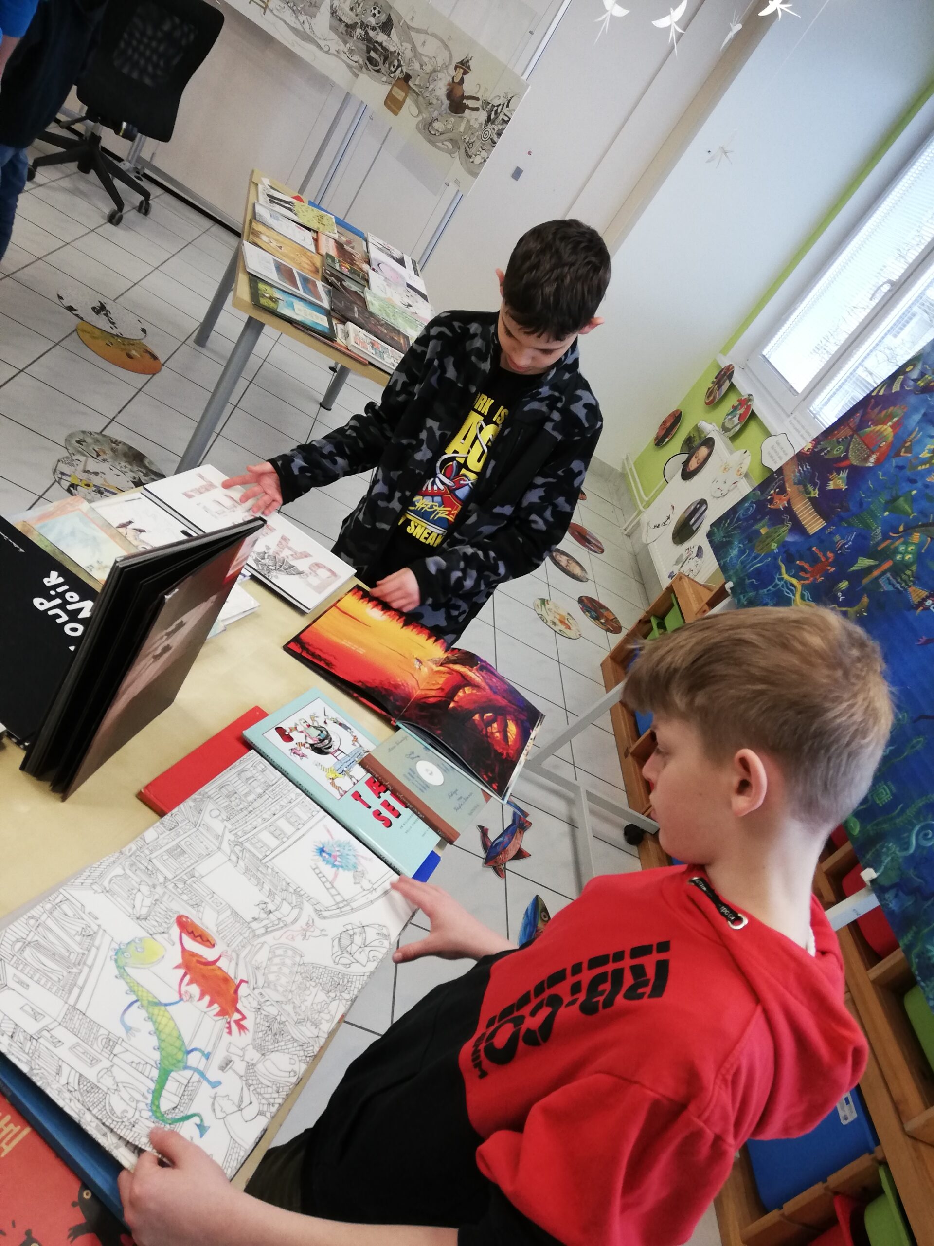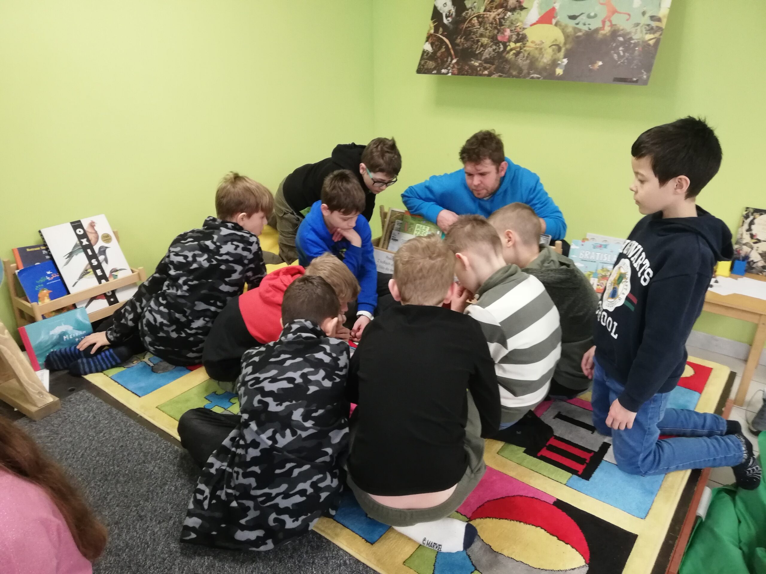 y – štvrtáci v rámci Týždňa slovenských knižníc výstavu Tiché putovanie z dielne BIBIANY, medzinárodného domu umenia pre deti v Bratislave. Využili sme jedinečnú príležitosť čítania kníh z 35 krajín z celého sveta. Stačilo sa dobre zadívať, lebo všetky príbehy boli ukryté v obrázkoch, bez slov. Taktiež deti zaujali aj pripravené zaujímavé aktivity.