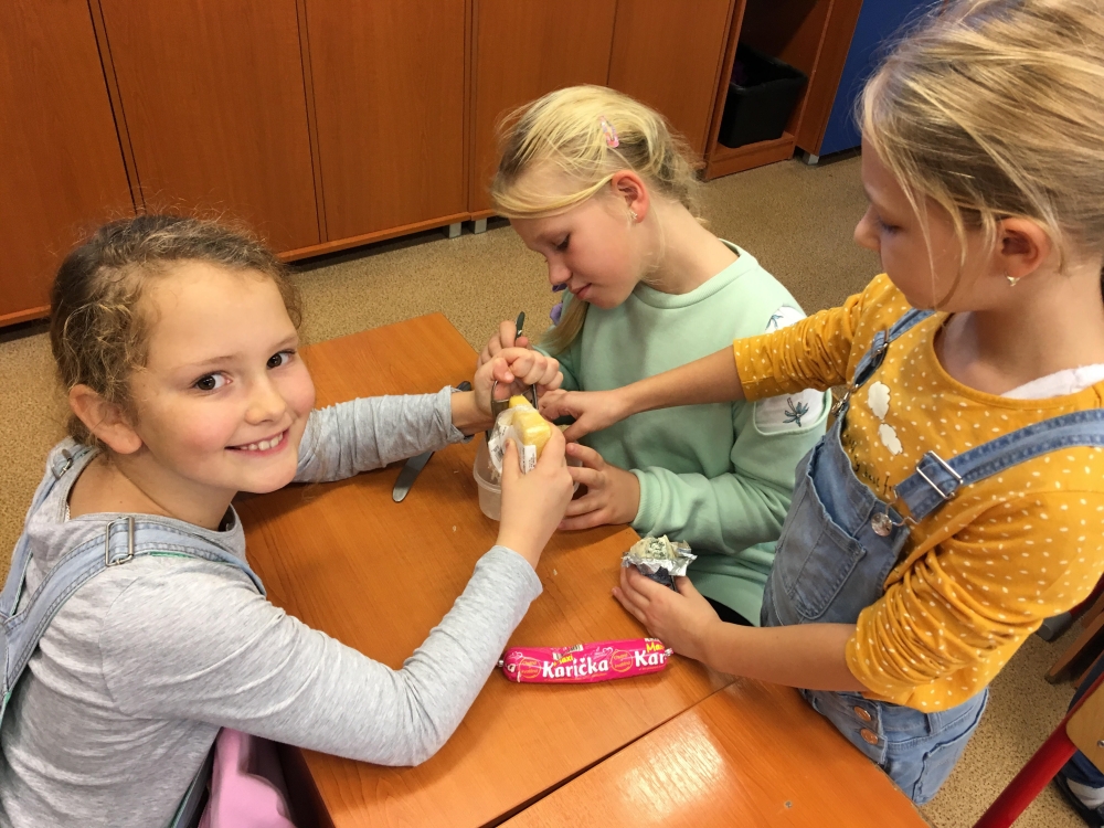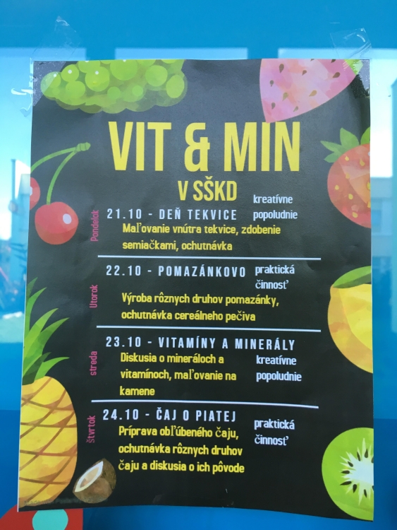 V jesenný týždeň pred Halloweenskou party sa deti v klube Motýle opäť naučili niečo nové. V rámci akcie Vit&Min mali možnosť vyrvoriť si tekvicu plnú dužiny a semiačok, ochutnávať semienka a oriešky, vyrobiť a zjesť pomazánky a celozrenné pečivo, zistiť čo je minerál a vyzdobiť si kameň, zrobiť a ochutnať rôzne čaje popri tvorení jesenných obrázkov. O zážitky nebola núdza.