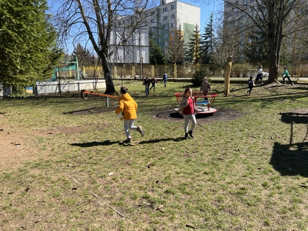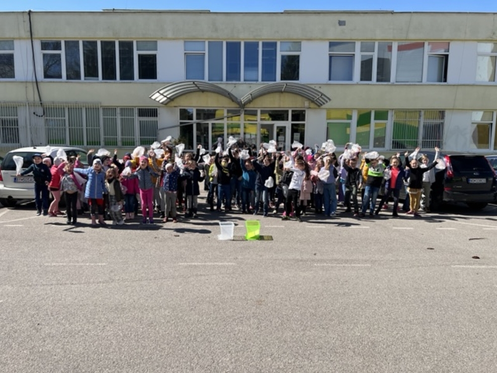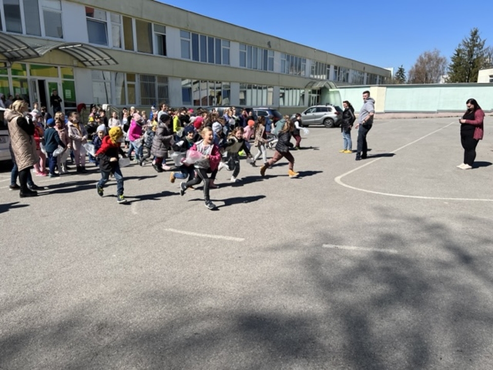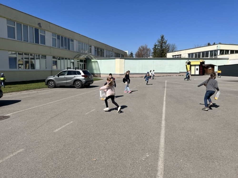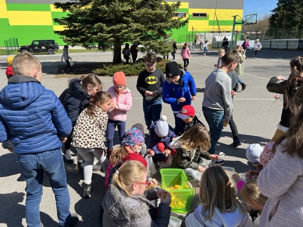 Pred veľkonočnými prázdninami sme pre deti v školskom klube pripravili veľkonočnú naháňačku za vajíčkami. Vajíčka boli plné sladkých prekvapení – tri, dva, jeden štart… Kto bude mať najviac?