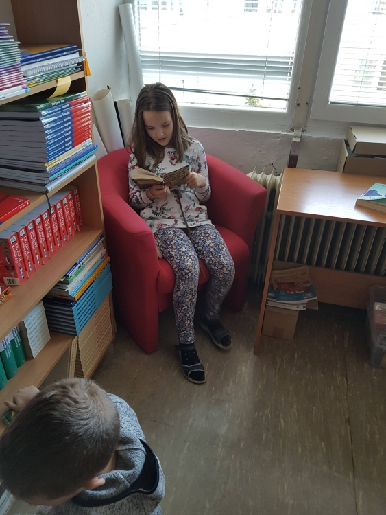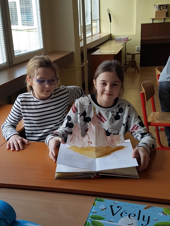 V rámci čitateľských aktivít aj deti zo včielok a lienok využívajú ponuku kníh z našej školskej knižnice.