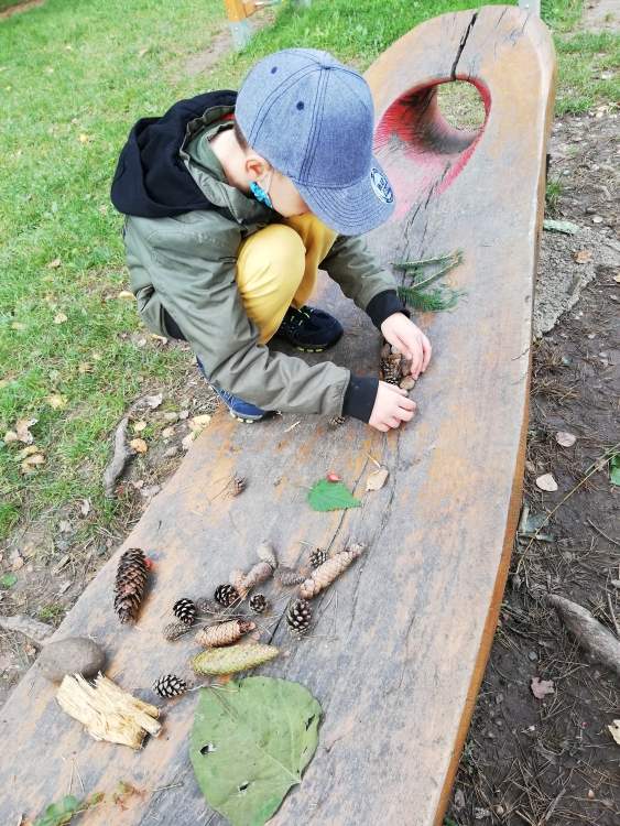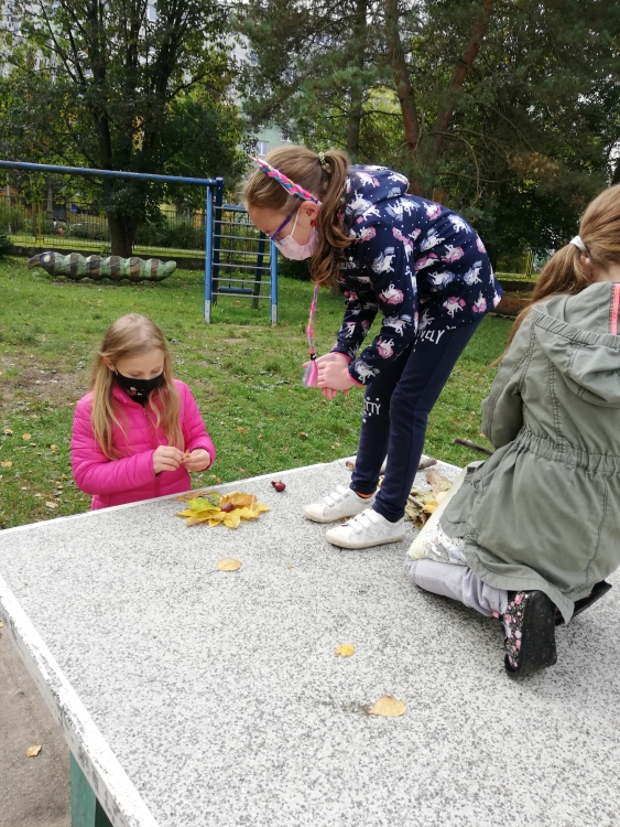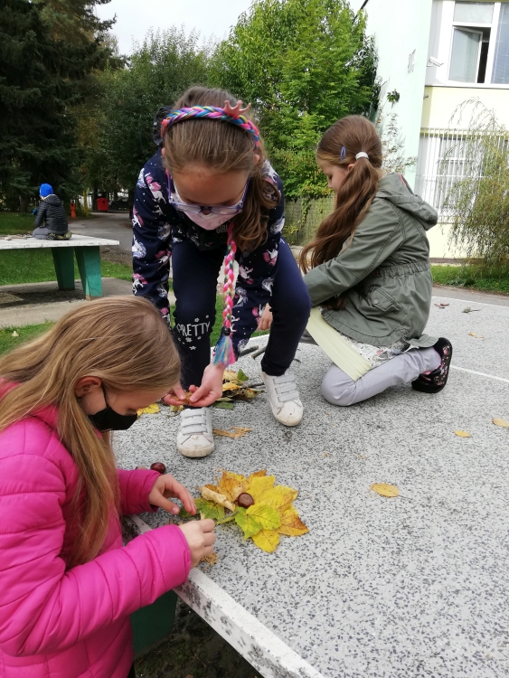 Druhácke Včielky využili pekné jesenné chvíle aj počas výtvarnej výchovy na veselé kreovanie na čerstvom vzduchu.