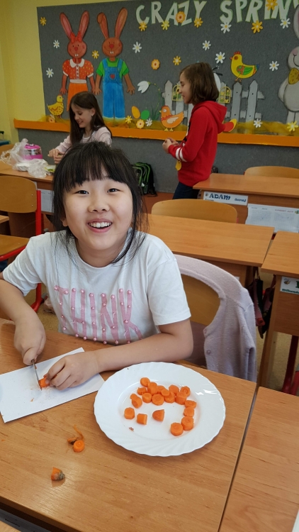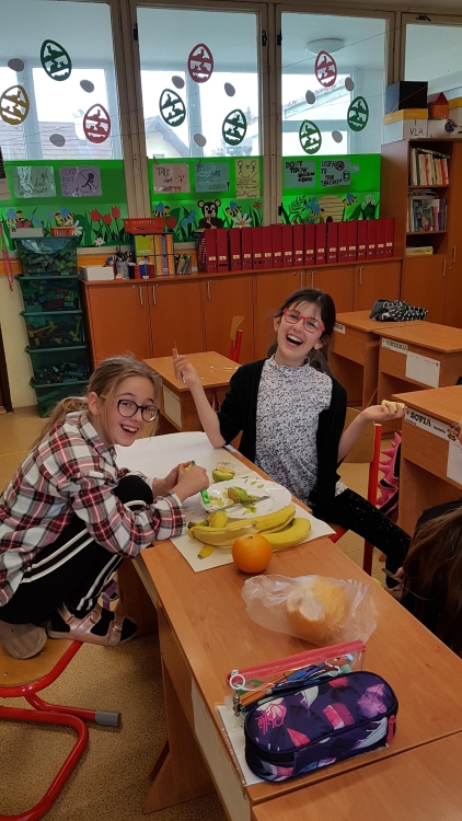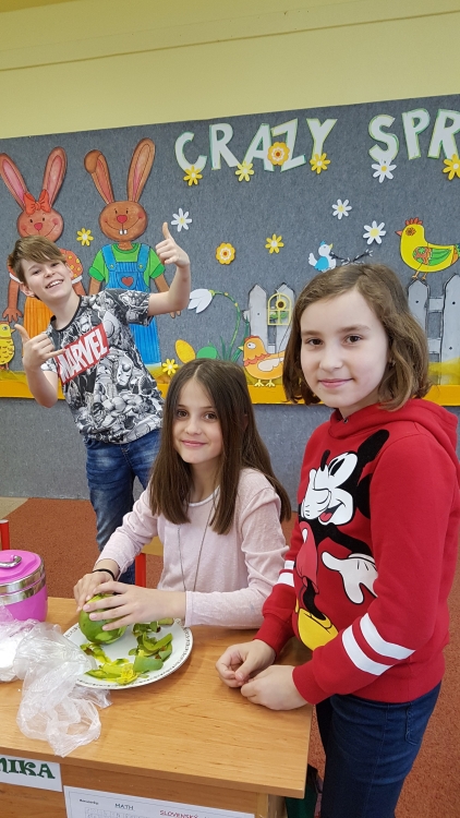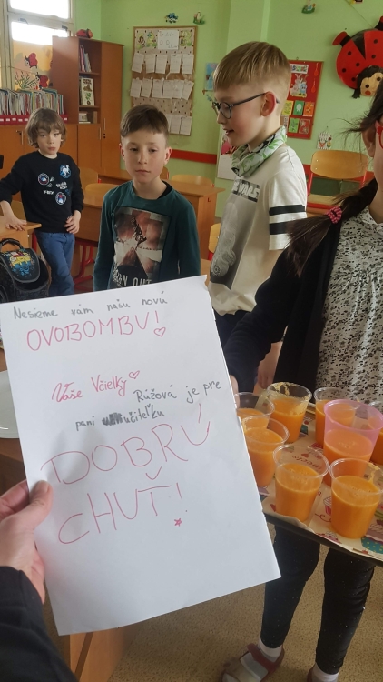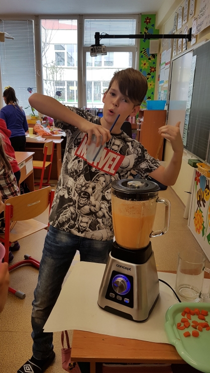 VIT & MIN – Aj v včielkovej triede myslíme na zdravú stravu a preto jedno pekné popoludnie sme si spolu s pani vychovávateľkou čistili, krájali a mixovali ovocie a zeleninu. Potom sme si pochutnali na chutných smoothies plných vitamínov.