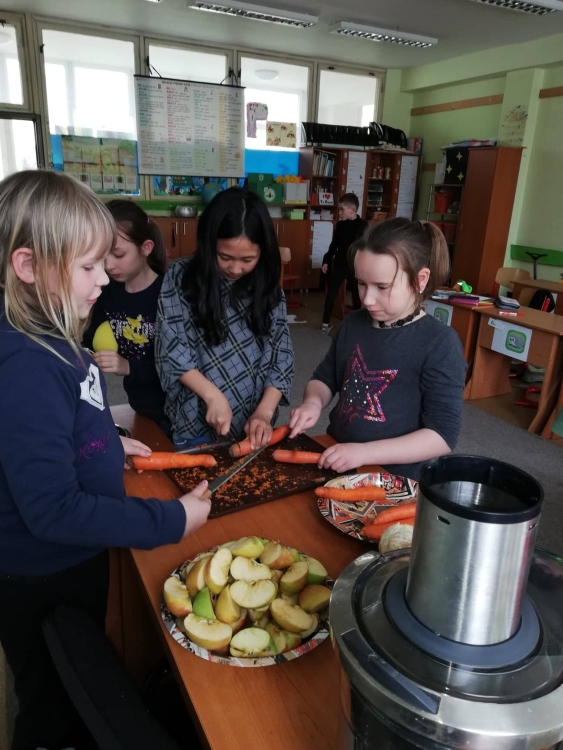 Vit a Min je je krycí názov našej už tradičnej celoklubovej akcie na podporu zdravého stravovania a zvýšenie povedomia o zdravom stravovaní. Deti si doniesli ovocie, zeleninu, bylinky a za pomoci pani vychovávateliek pripravovali zdravé dobroty, odšťavovali a pripravovali chutné nápoje alebo mixovali smoothies. Deťom sa táto akcia veľmi páčila, pretože sa sami iniciatívne zapájali do prípravy týchto zdravých dobrôt – odmena bola predsa istá 🙂