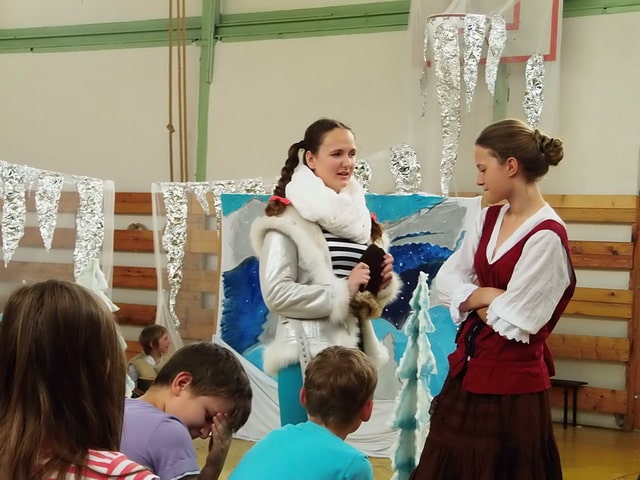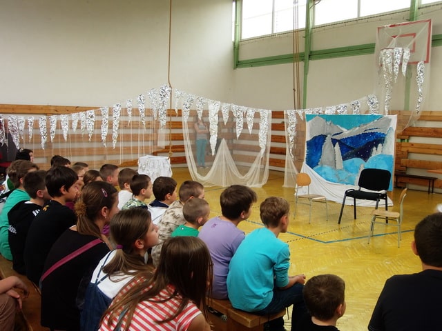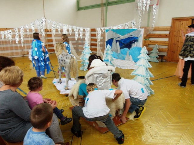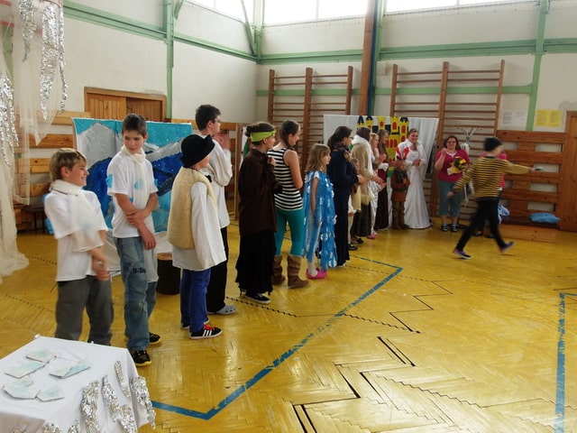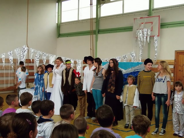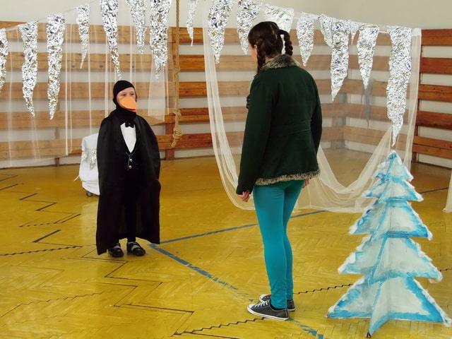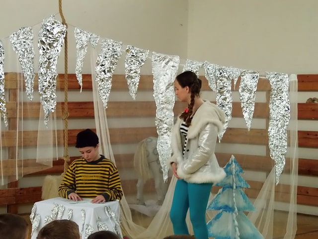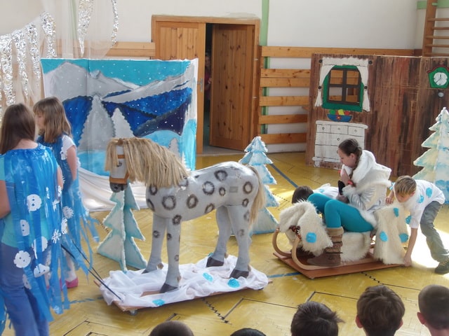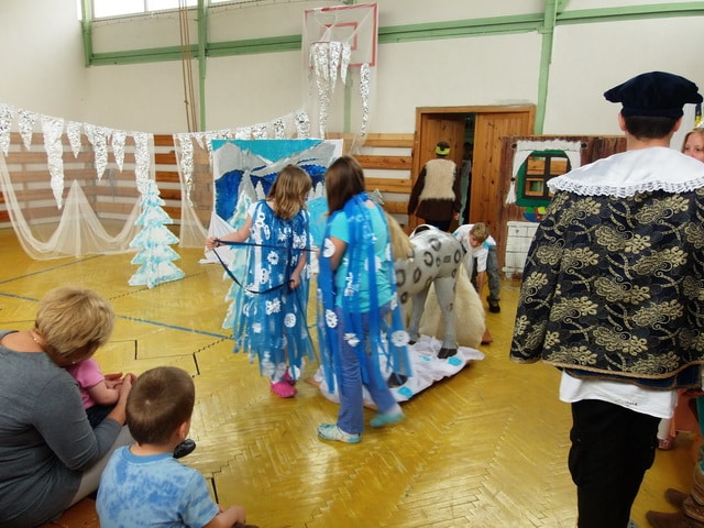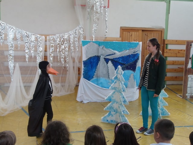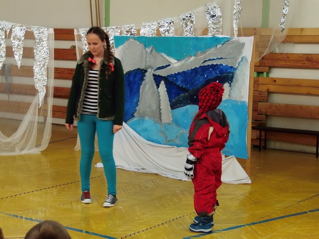 Nuž niekedy aj uprostred horúcich letných dní môže mraziť. Najmä vtedy, keď v priestoroch telocvične našej školy zavládla Snehová kráľovná a spolu s ňou členovia divadelného krúžku Vrabčiaci predstavili publiku výsledok poctivej sedemmesačnej práce. Pozývame aj Vás na virtuálnu návštevu divadelného predstavenia, ktoré vás zavedie do ríše snehu a ľadu na stretnutie s nerozvážnym Kayom a odvážnym dievčatkom Gerdou…