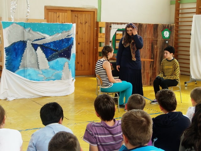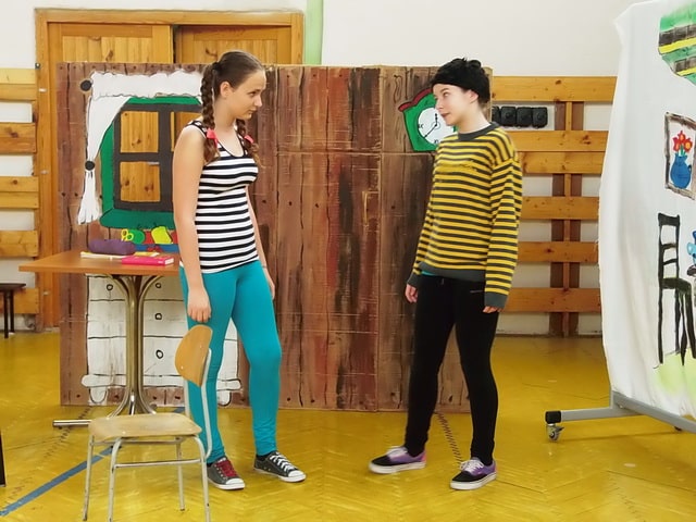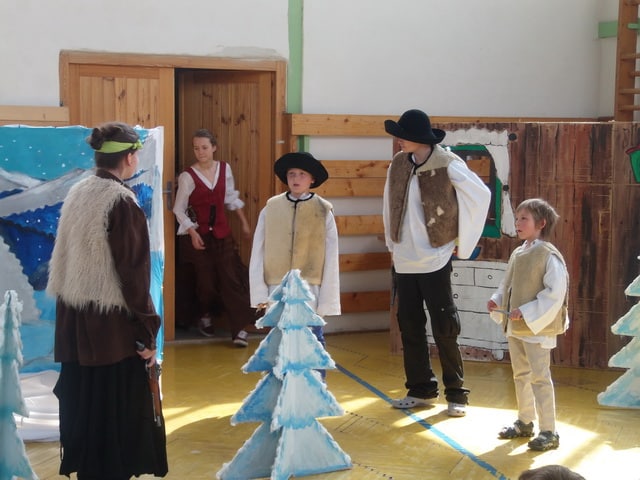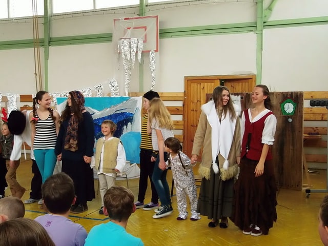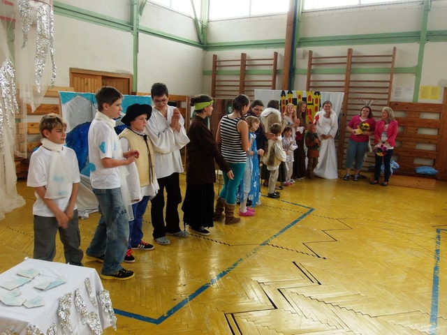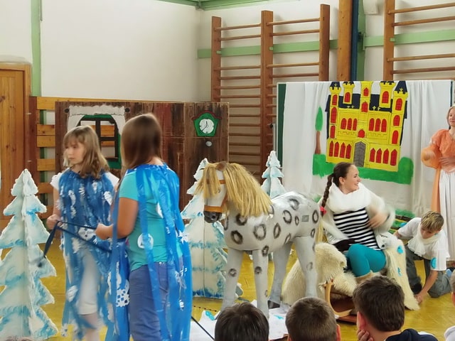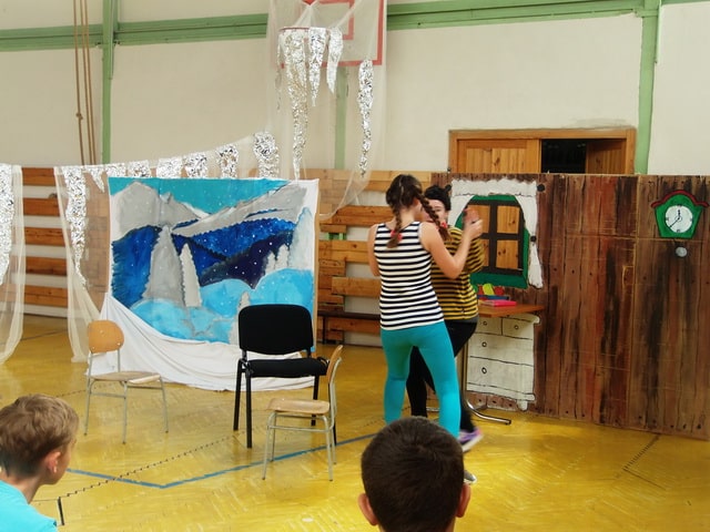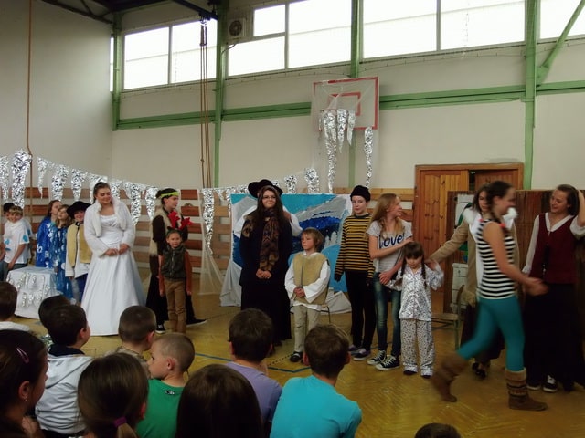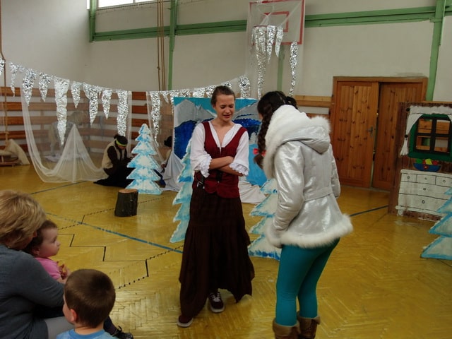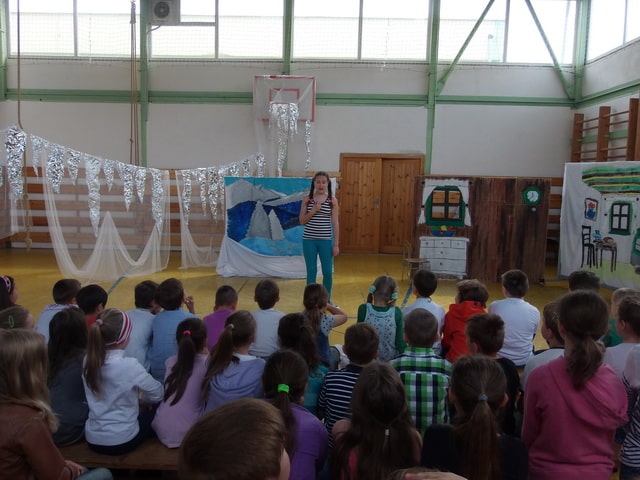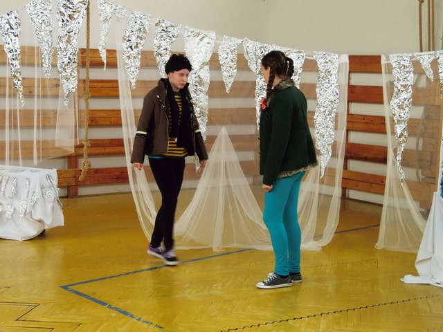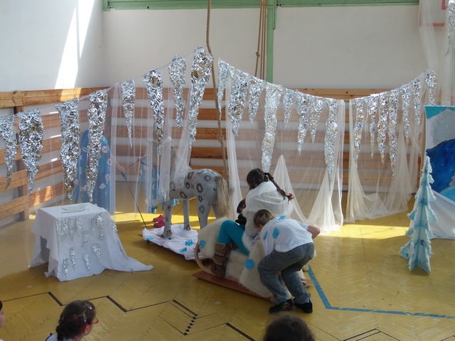 Nuž niekedy aj uprostred horúcich letných dní môže mraziť. Najmä vtedy, keď v priestoroch telocvične našej školy zavládla Snehová kráľovná a spolu s ňou členovia divadelného krúžku Vrabčiaci predstavili publiku výsledok poctivej sedemmesačnej práce. Pozývame aj Vás na virtuálnu návštevu divadelného predstavenia, ktoré vás zavedie do ríše snehu a ľadu na stretnutie s nerozvážnym Kayom a odvážnym dievčatkom Gerdou…