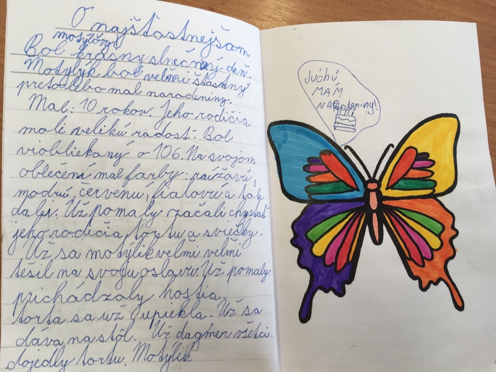 Marec je mesiac kníh, a preto sa žiaci z klubu Motýle rozhodli, že nebudú len pasívne počúvať čítanú knihu od pani vychovávateľky, ale že samy nejaké knihy vytvoria. A veru, ich fantázia (a pravopisné chybynemá medze!