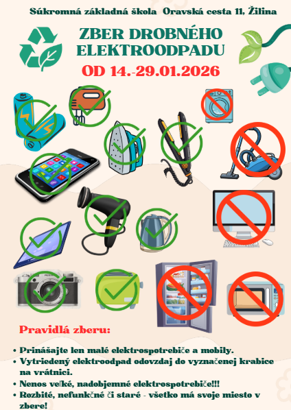 Celoročná možnosť: Drobný elektroodpad (ktorý sa zmestí do školskej tašky) tu môžete odovzdať kedykoľvek počas celého školského roka.