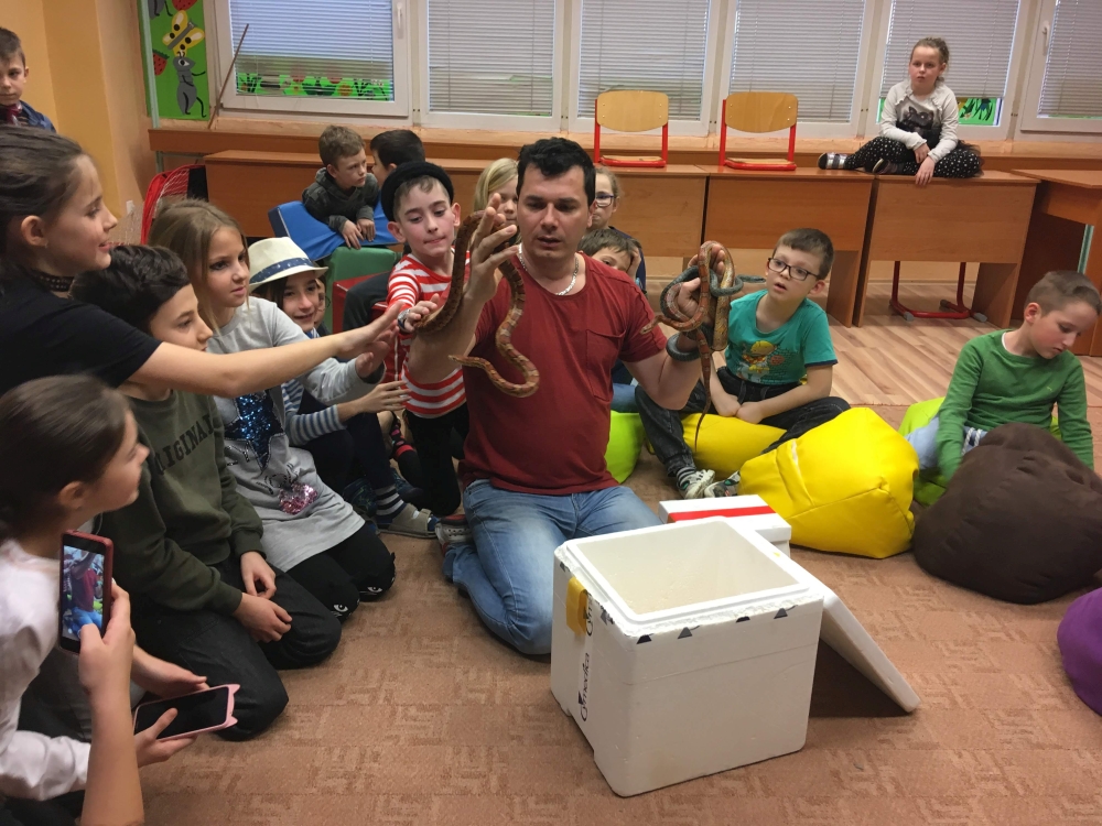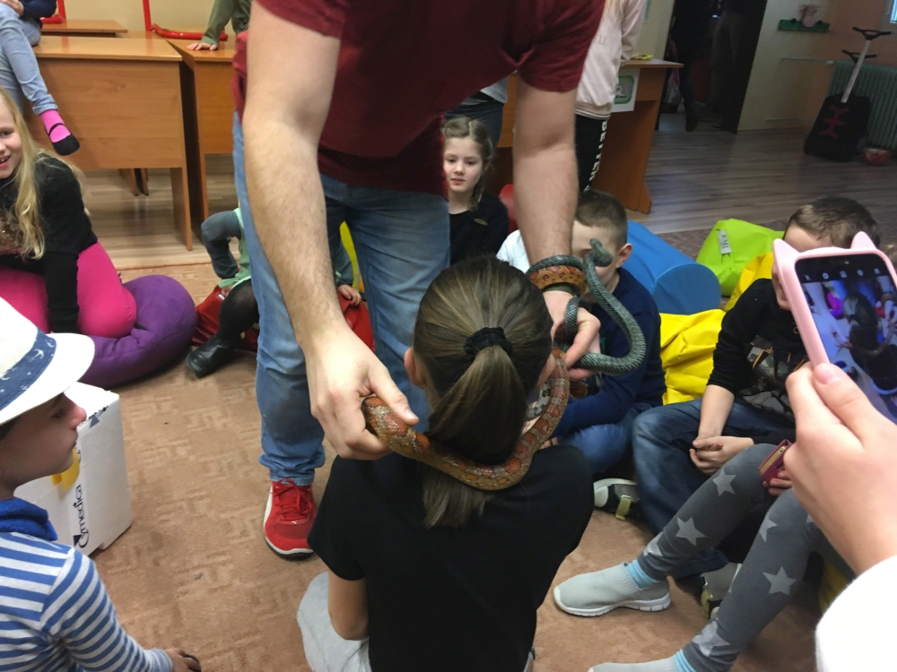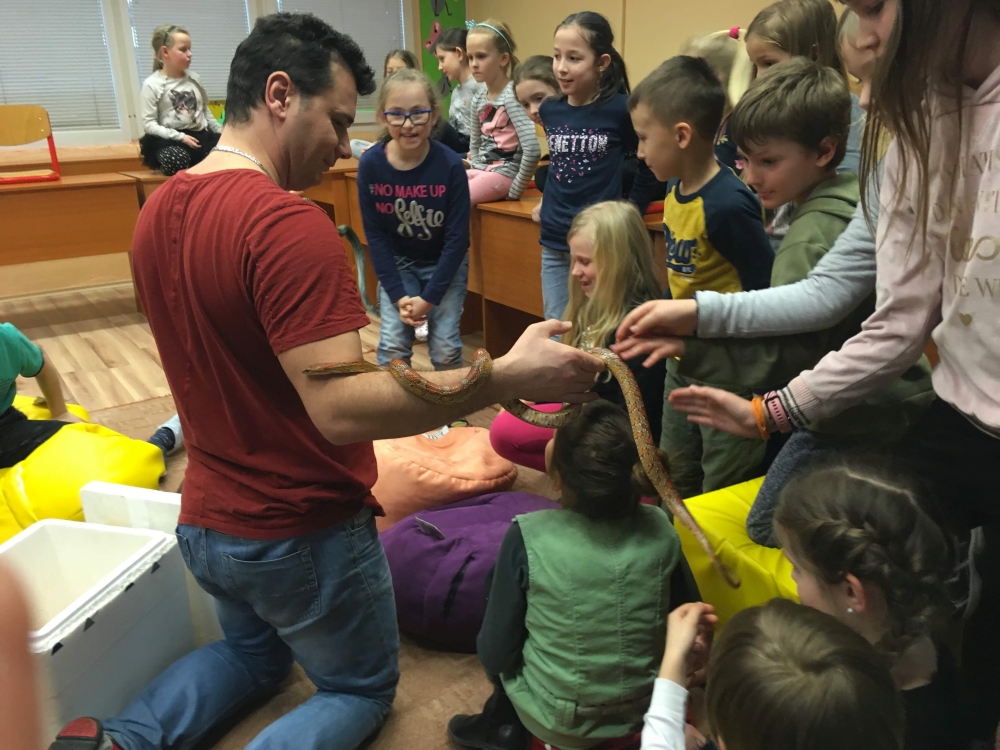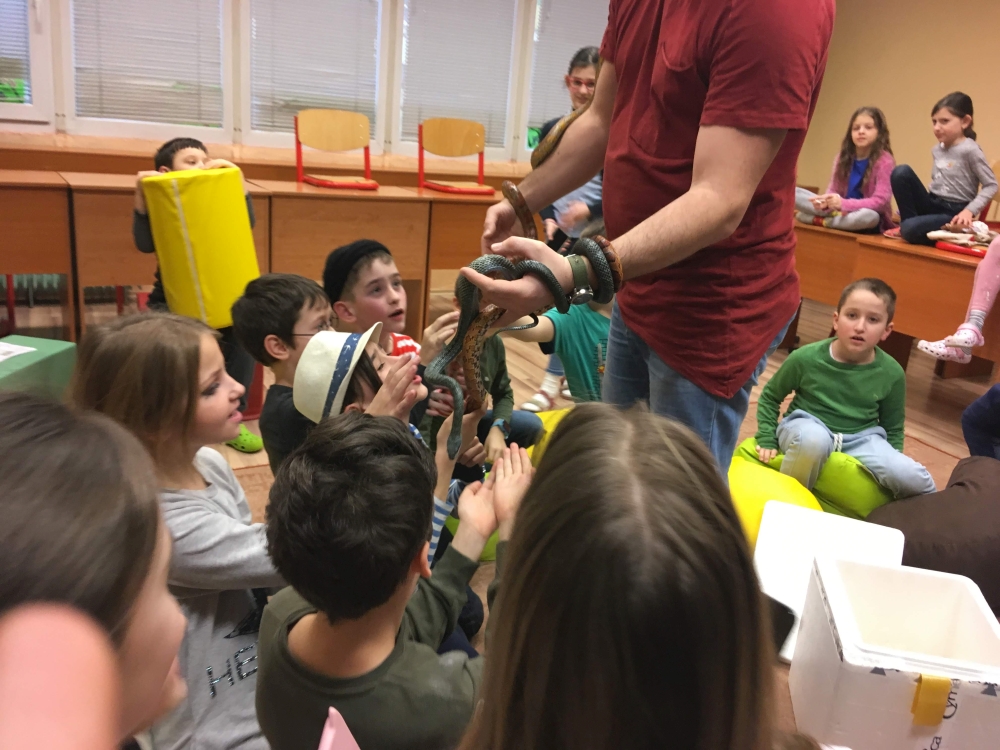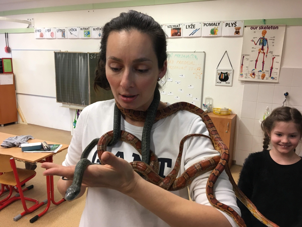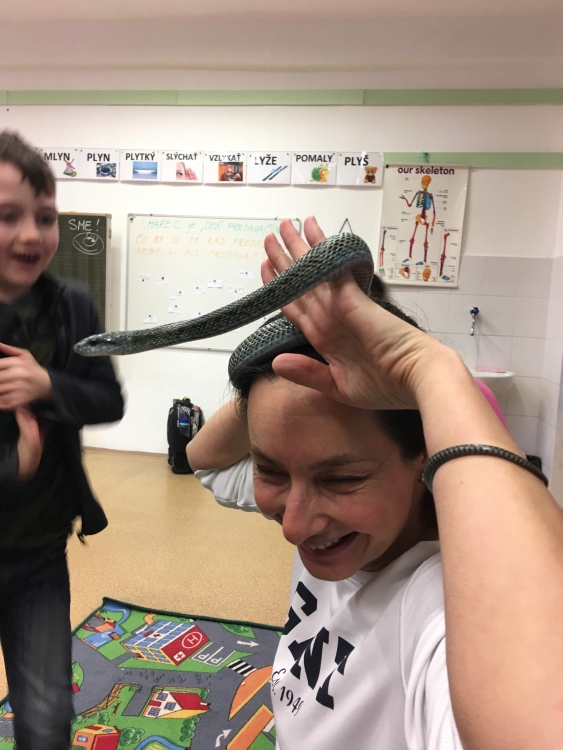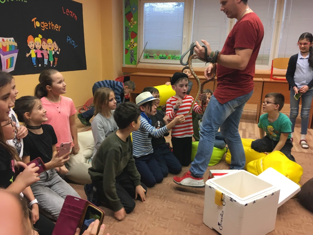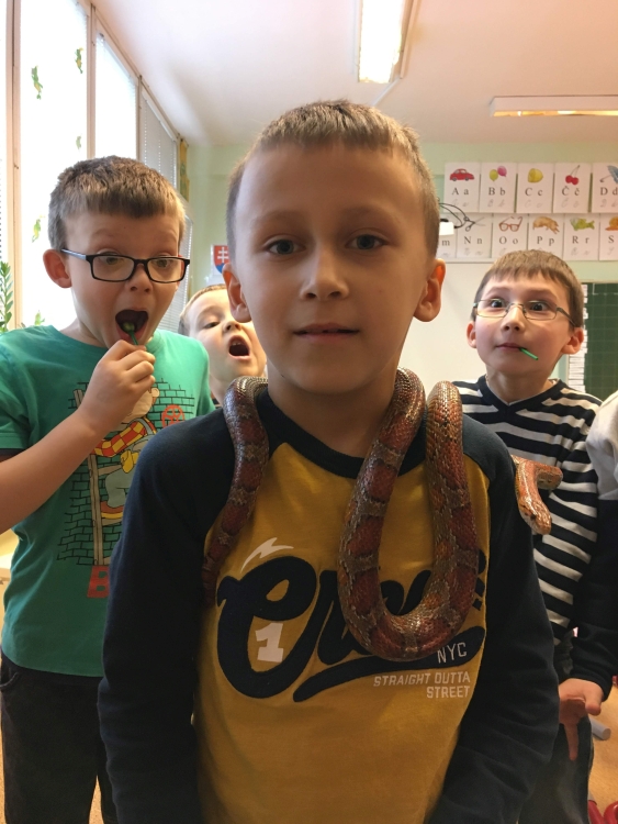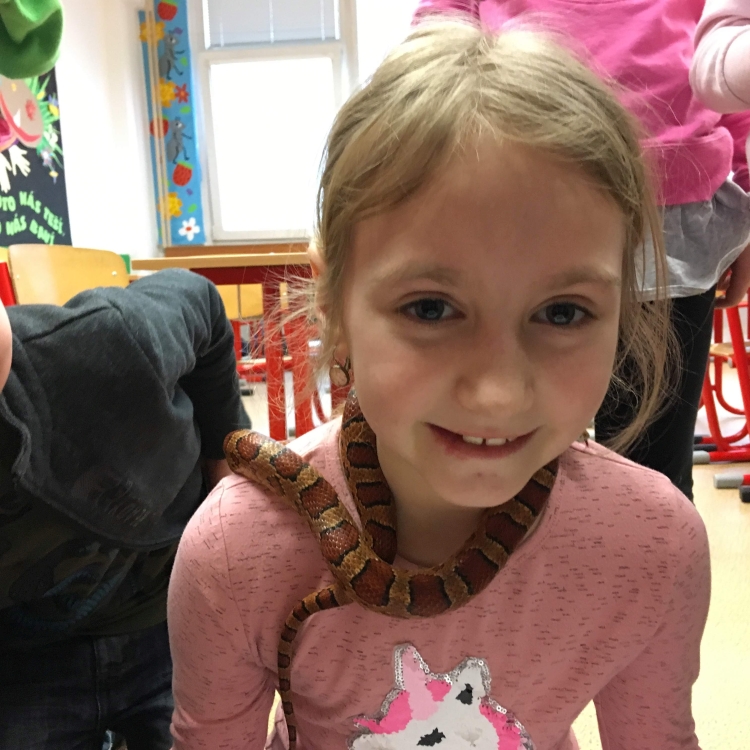 Kto by povedal, že hady, ktorých sa väčšina nás štíti sú také zaujímavé. Zaujímavú prednášku so živým hadom si mohli naše deti vypočuť od nášho p. vychovávateľa Roba Štolfu. Je to expert na chovanie zvierat v zajatí a obohacuje náš klub zážitkovými prednáškami o živočíšnej ríši.
