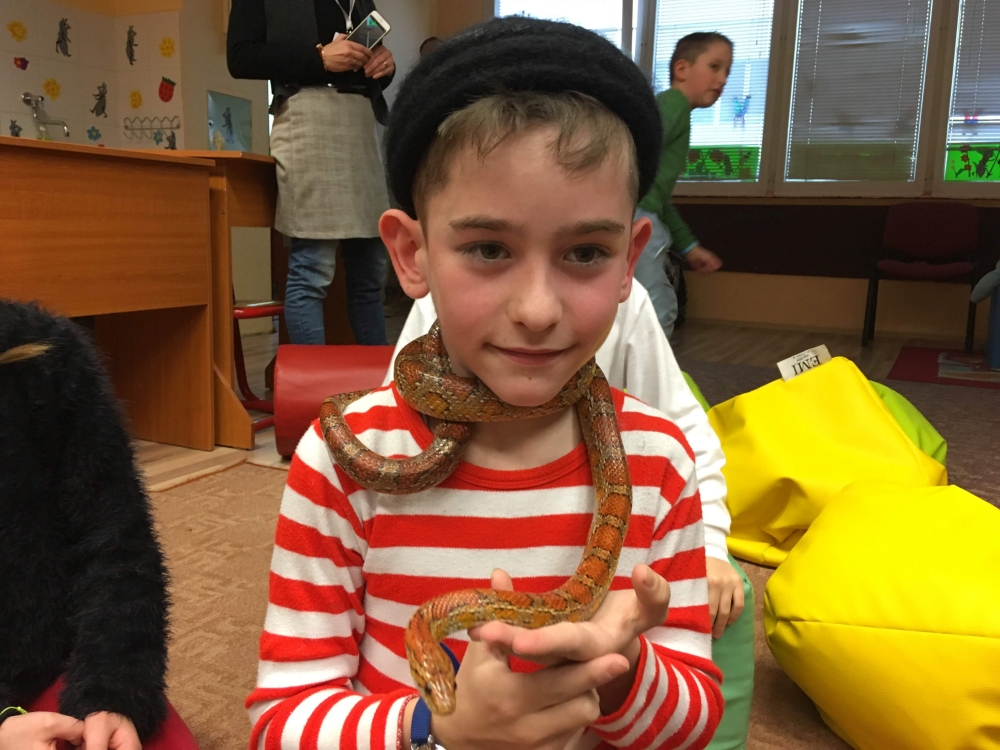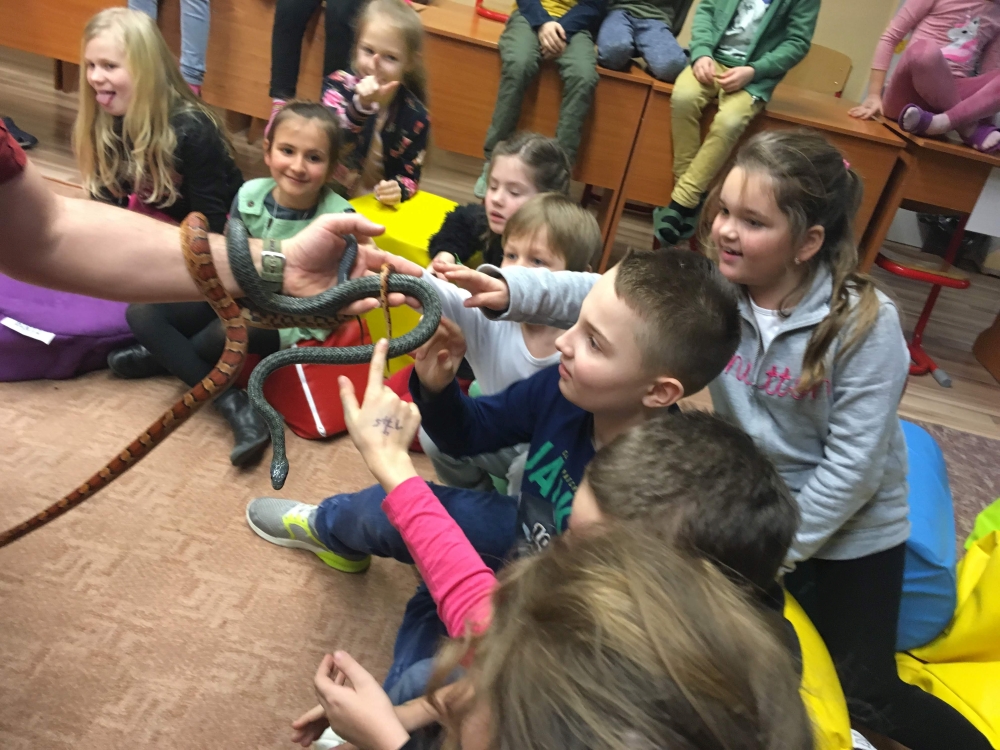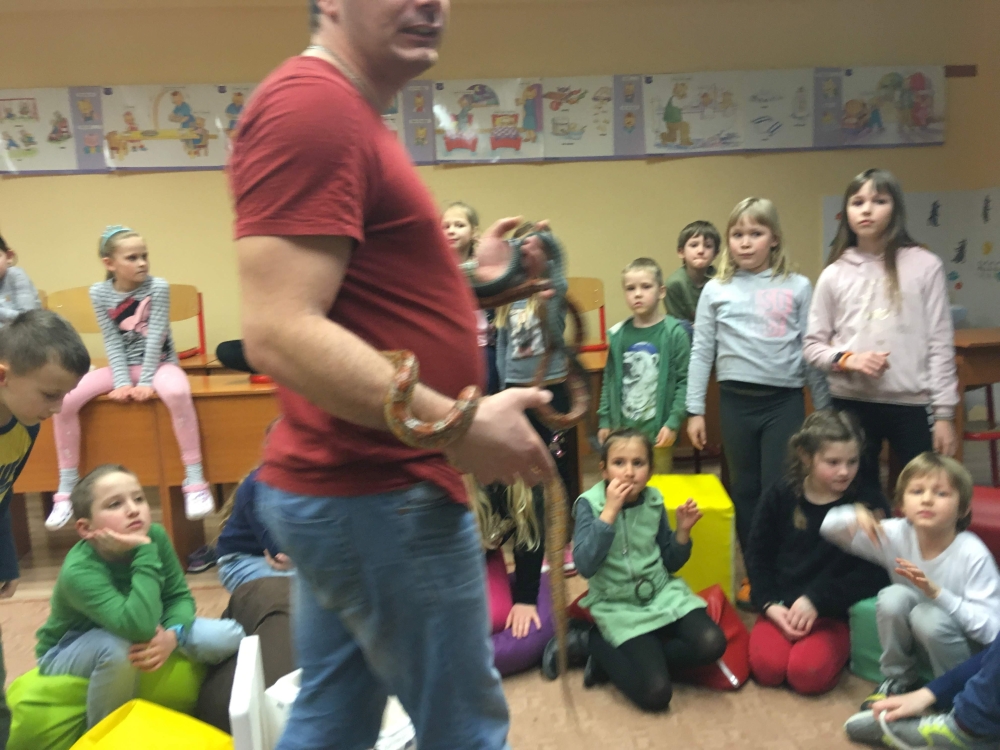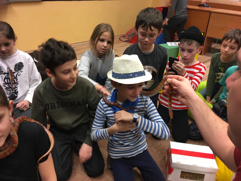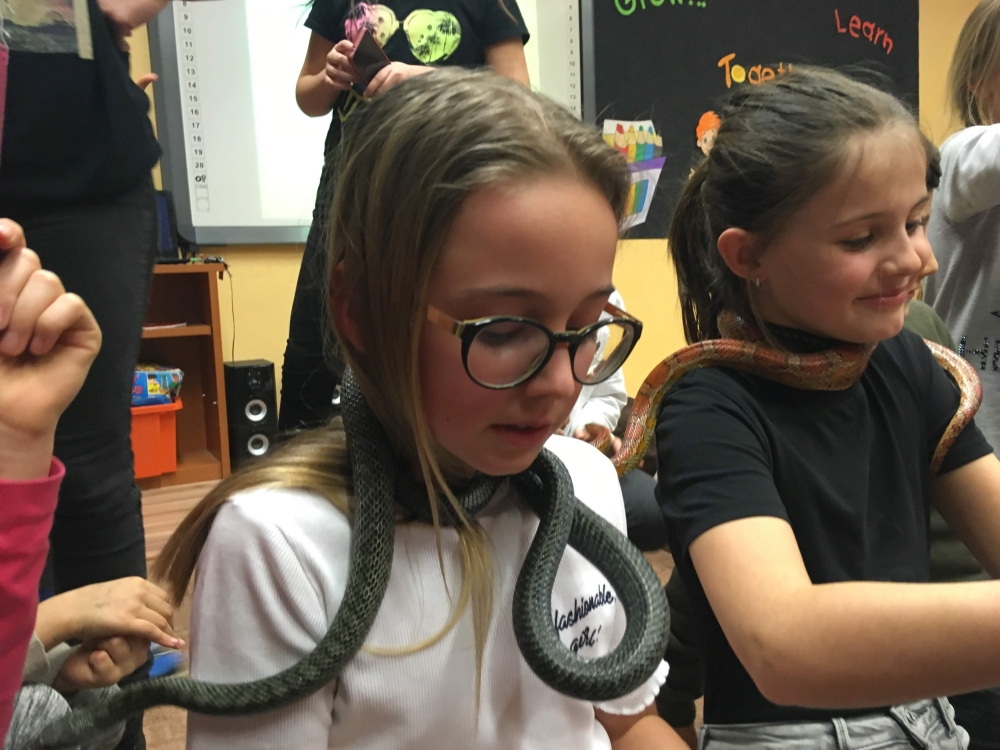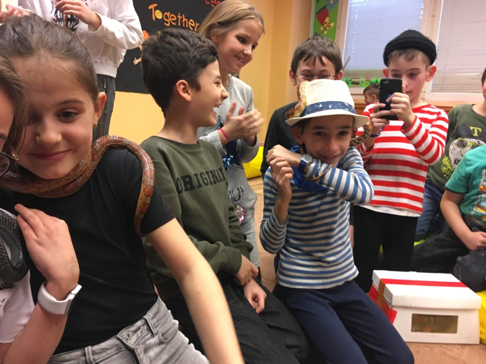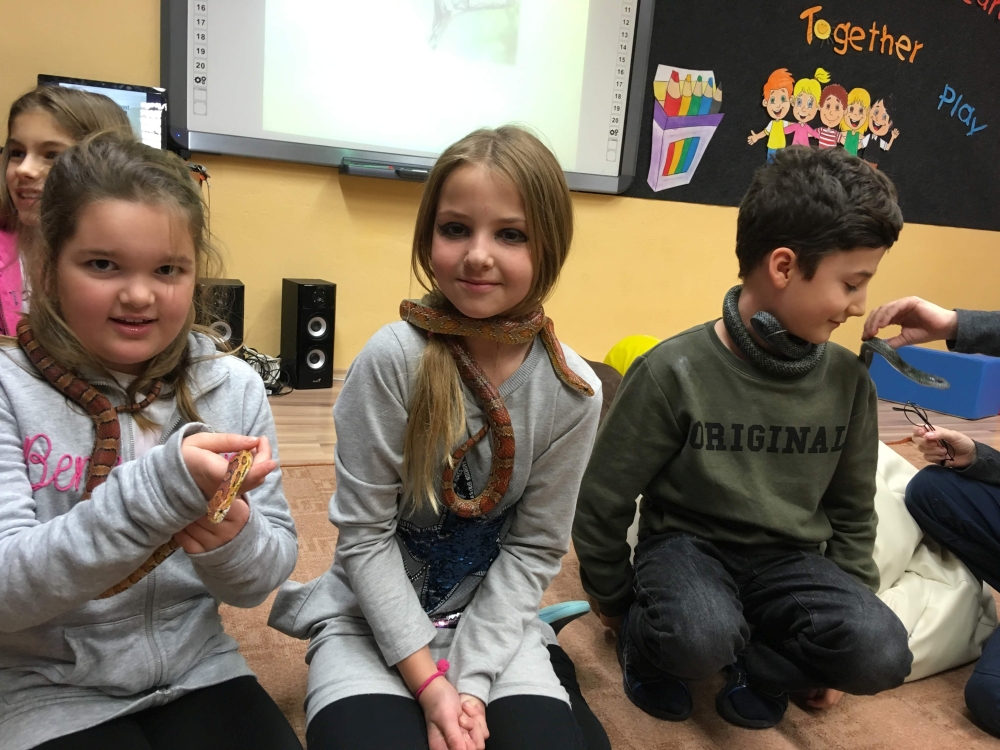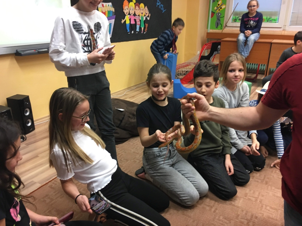 Kto by povedal, že hady, ktorých sa väčšina nás štíti sú také zaujímavé. Zaujímavú prednášku so živým hadom si mohli naše deti vypočuť od nášho p. vychovávateľa Roba Štolfu. Je to expert na chovanie zvierat v zajatí a obohacuje náš klub zážitkovými prednáškami o živočíšnej ríši.