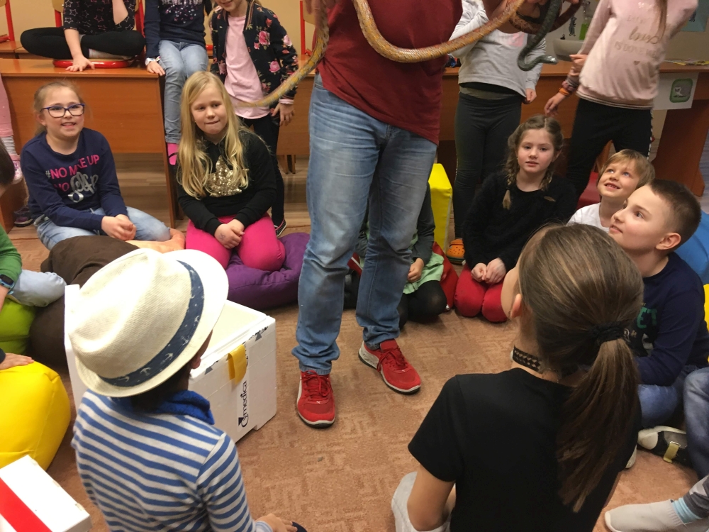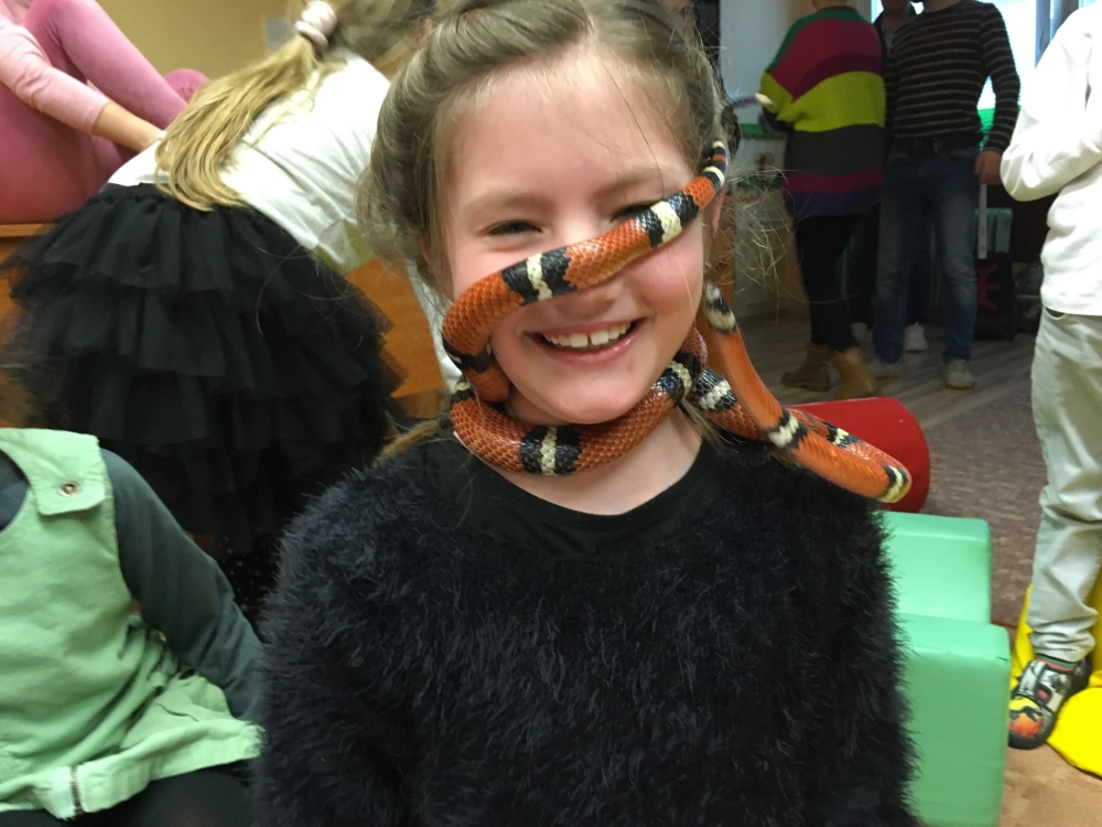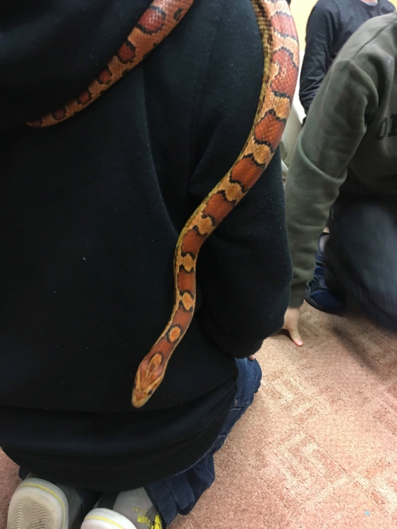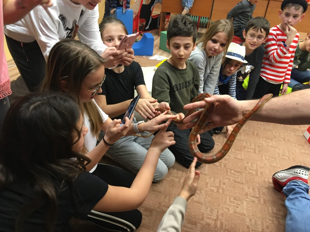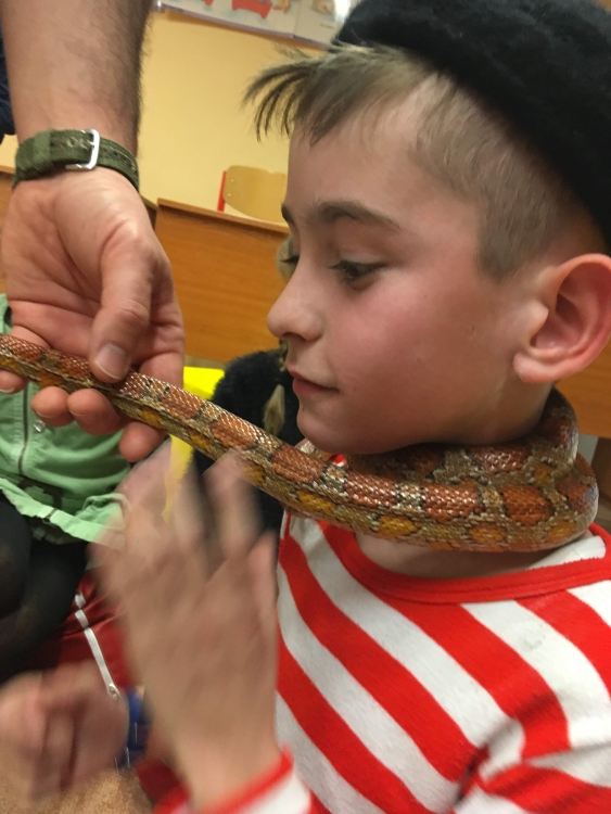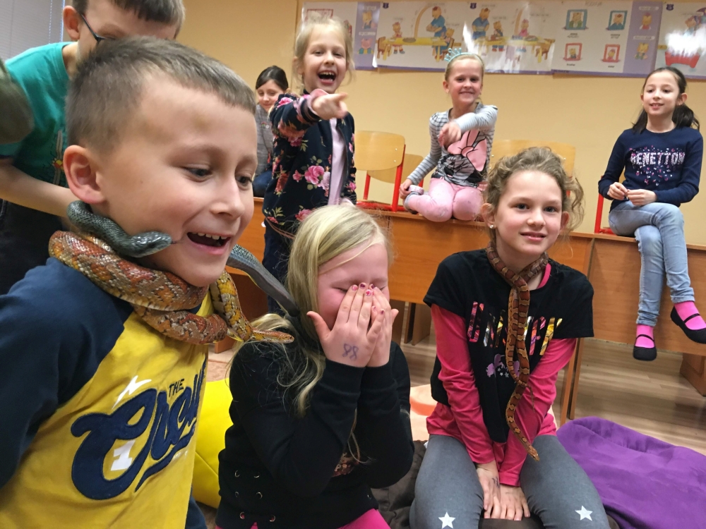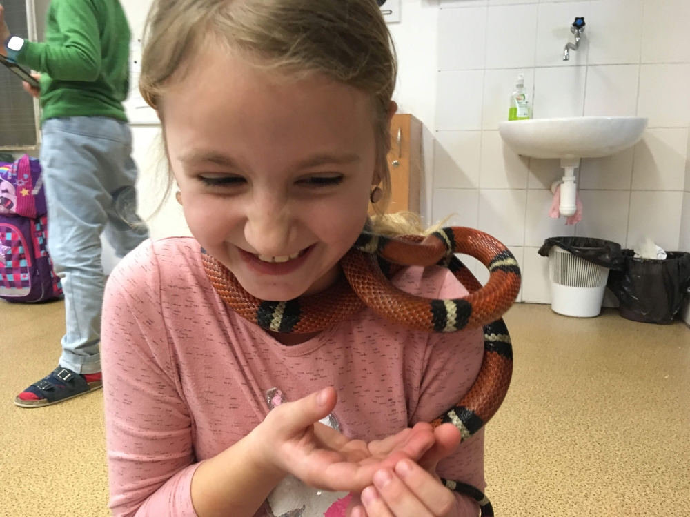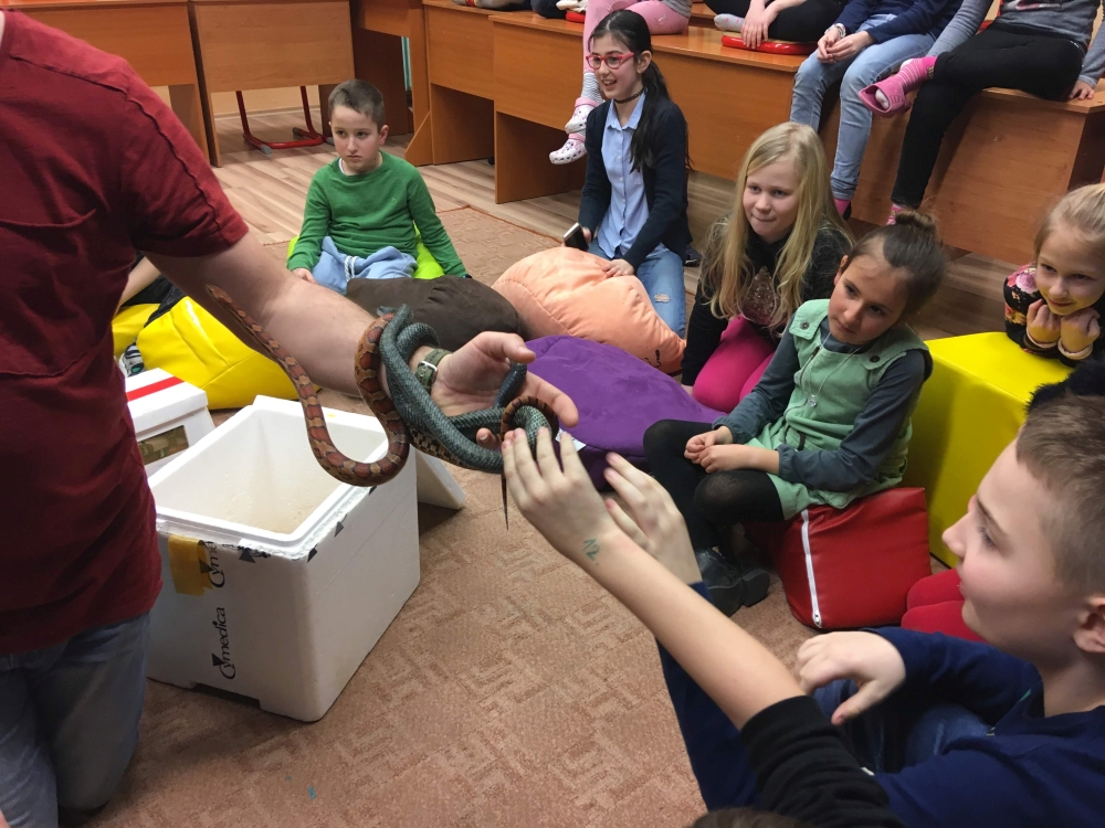 Kto by povedal, že hady, ktorých sa väčšina nás štíti sú také zaujímavé. Zaujímavú prednášku so živým hadom si mohli naše deti vypočuť od nášho p. vychovávateľa Roba Štolfu. Je to expert na chovanie zvierat v zajatí a obohacuje náš klub zážitkovými prednáškami o živočíšnej ríši.