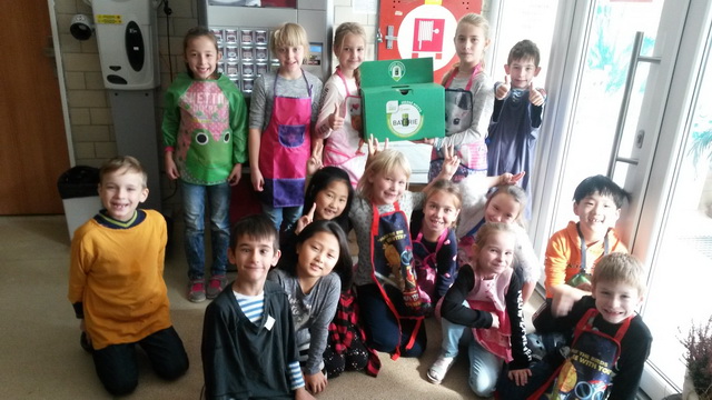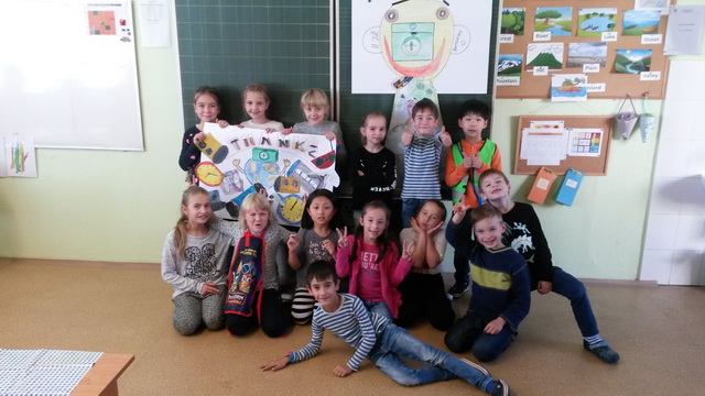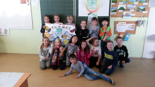 V rámci projektu Zelená planéta sme aj tento rok začali zberať použité batérie. Žiaci II.JŽ sa rozhodli urobiť viac. Vďaka návrhu p.uč. Jalovičárovej sme si vymysleli plagáty na propagáciu recyklácie batérií. Preto sme si vzali zelenú zbernú nádobku do triedy a pokúsili sme sa ju stvárniť aj výtvarne. Dotvorili sme k nej našu planétu, ktorá sa vyčistí od elektroodpadu a všetkým nám ďakuje. Na druhom plagáte sme znázornili postavičku smajlíka, ktorý sa oblizuje batériovým jazykom. Má aj moderné šaty, na ktorých sme znázornili najrôznejšie spotrebiče, ktoré potrebujú na svoj výkon spomínané batérie. Sme na seba hrdí!