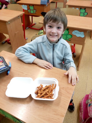 Žabky v stredu aj dnes ochutnávali v našom svojimi maškrtnými jazýčkami rôzne druhy zeleniny a aj iné zdravé dobroty, ktoré im naozaj chutili. Okrem občerstvenia v triede v našom “zdravom bufete” maškrty poslali aj rodičia, ktorým na zdravej výžive záleží. Medzi ochutnávkami bola uhorka, mrkva, kaleráb, paprika, topinambur, sladké zemiaky, ale aj rôzne bio a raw výrobky. Naučili sme sa ako zelenina vyzerá, ako vonia a ako chutí a hlavne sme urobili niečo pre svoje zdravie. Našim mamičkám a oteckom ďakujeme za starostlivosť a záujem. Žabky